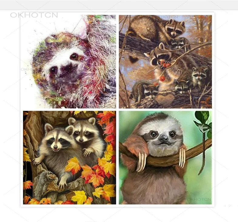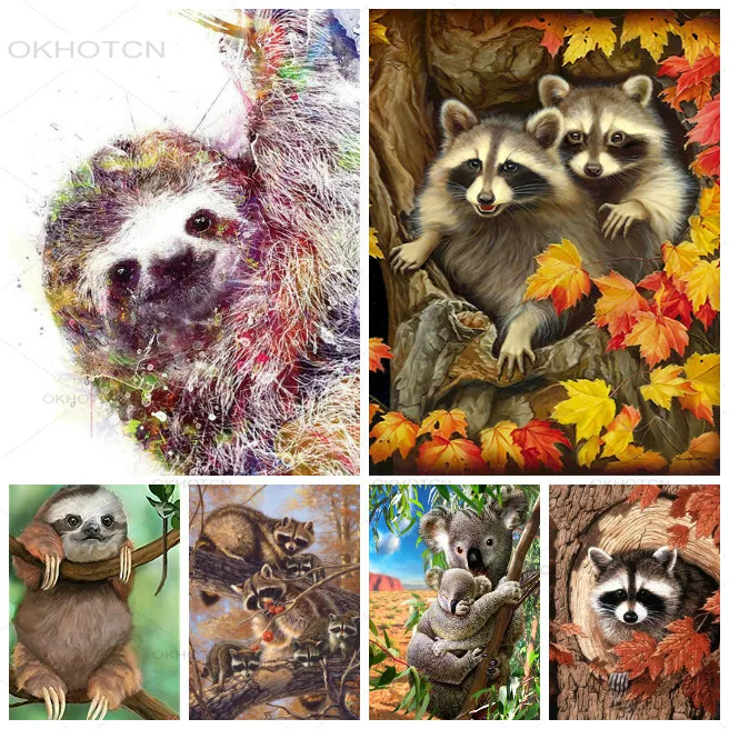 Алмазная 5D Вышивка сделай сам с изображением животных, енота, дерева, кленового листа, алмазная живопись, мультяшная вышивка крестиком, мозаичное украшение