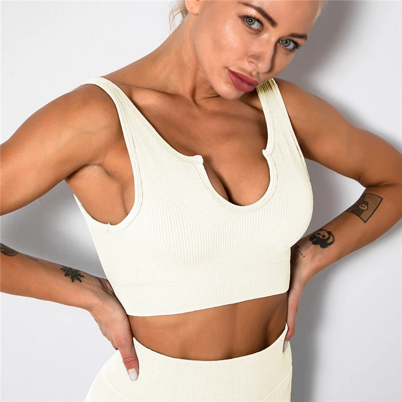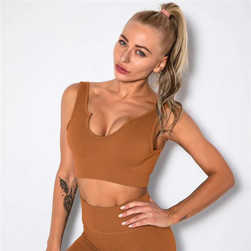 Костюм спортивный женский, трикотажный, бесшовный, с U-образным выр...