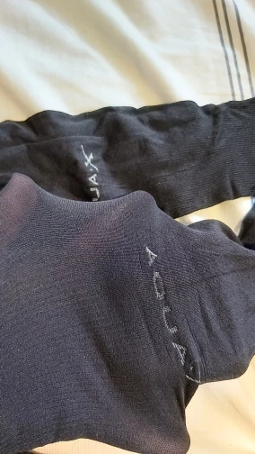 Материал рукава похож на относительно толстый капрон, может собирать зацепки. На внешней стороне есть надпись серыми буквами, довольно крупная. Эта надпись, на мой взгляд, лишняя