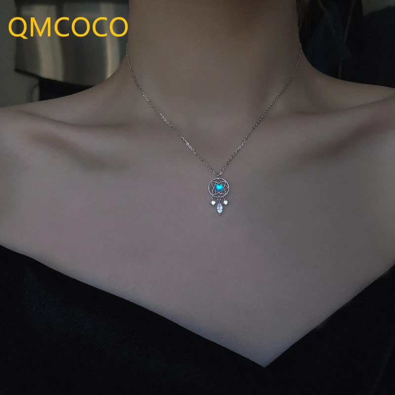 QMCOCO винтажное легкое роскошное серебряное ожерелье Простой дизайн Ловец снов женское ожерелье для женщин ювелирные изделия на день рождения подарки