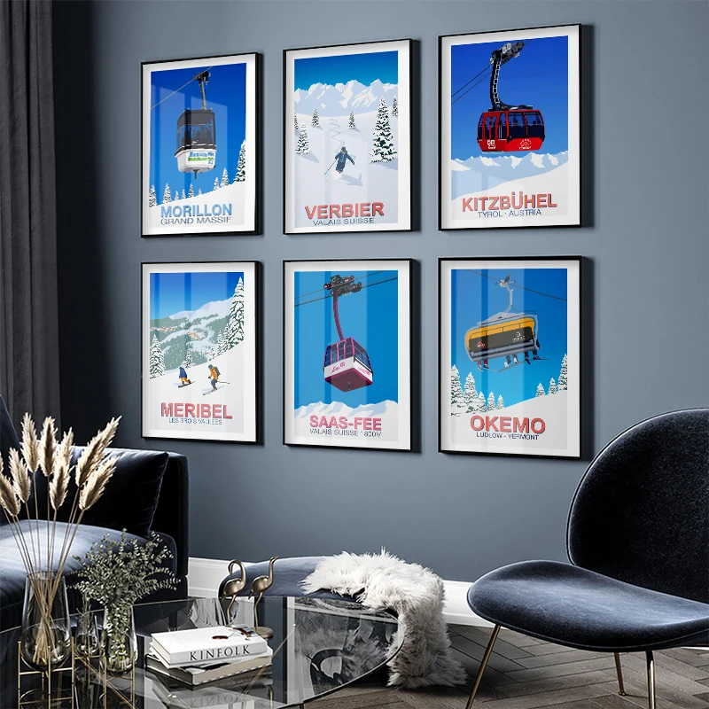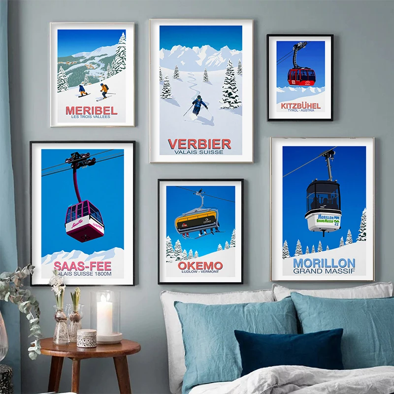 ВИНТАЖНЫЙ ПЛАКАТ, зима пейзаж из путешествия, спортивный горнолыжный курорт, Художественная печать, настенные картины, Картина на холсте, Ретро Декор для дома