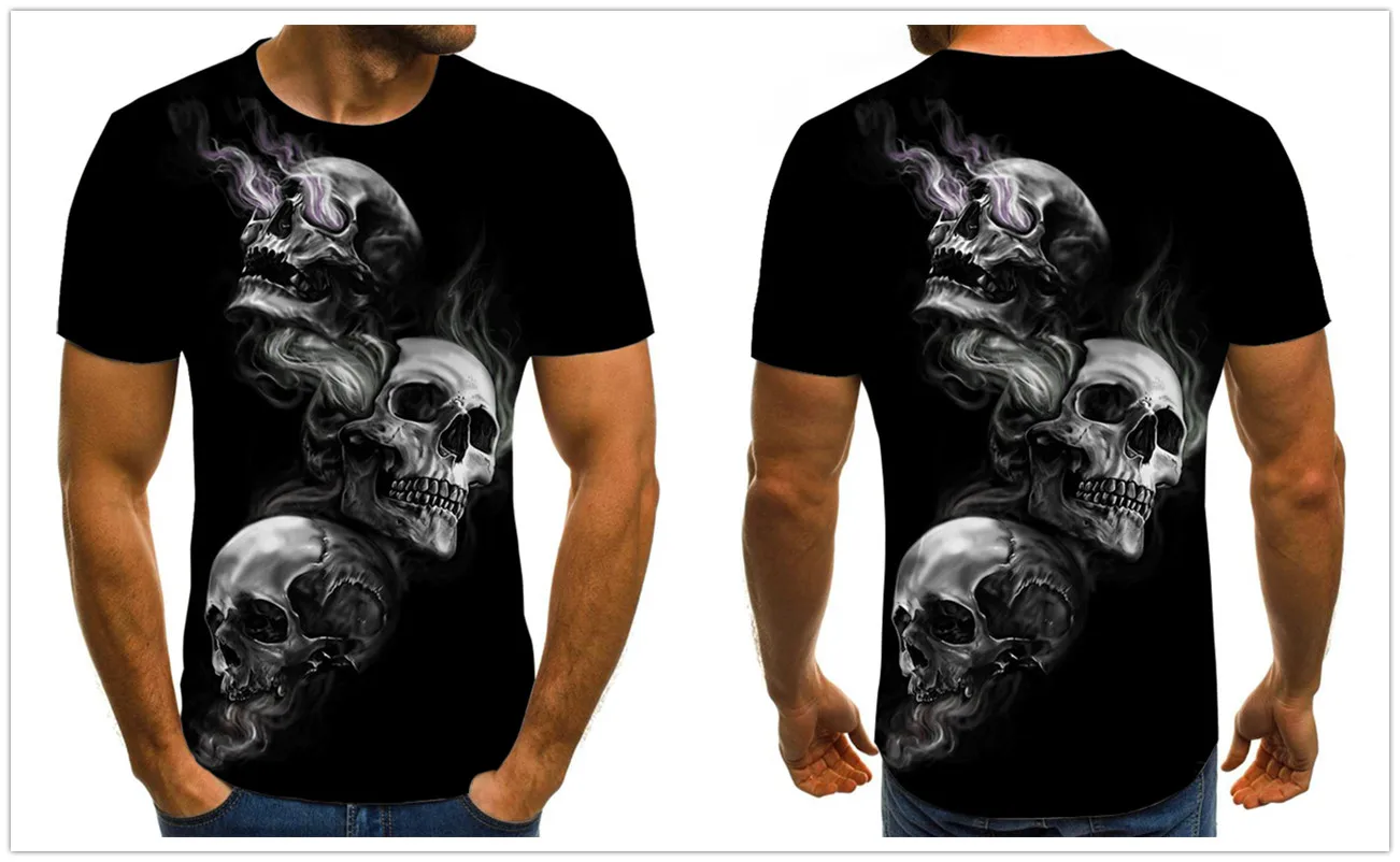 Мужская летняя футболка, дышащая уличная одежда с 3D принтом черепа, 2021