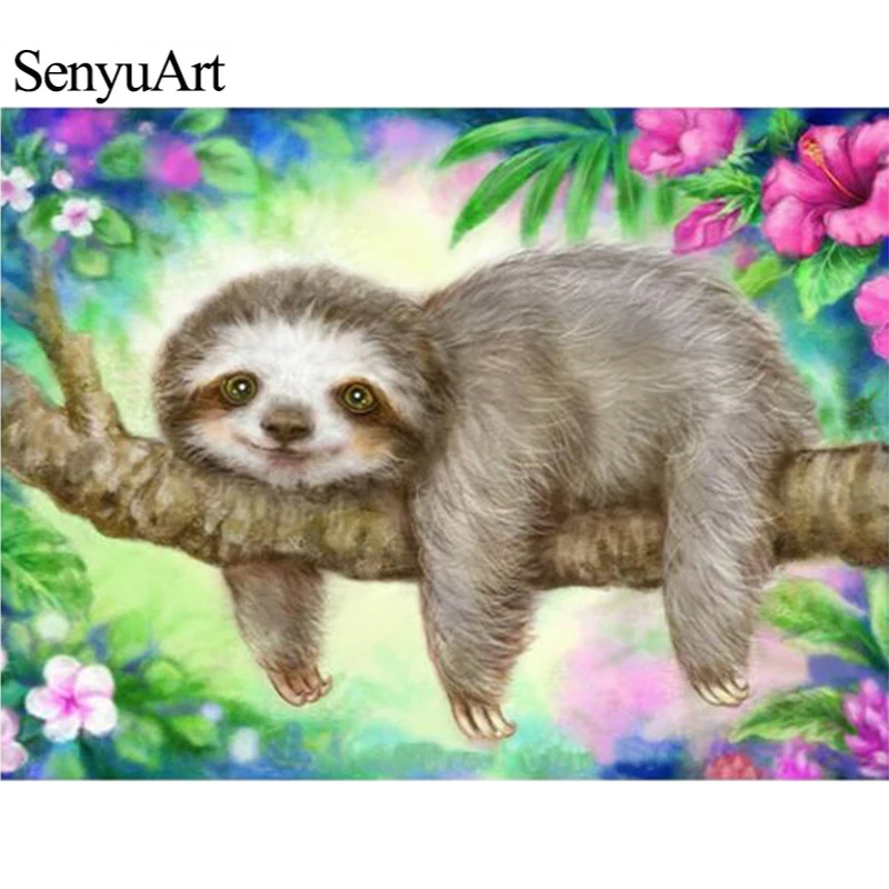 SenyuArt Сделай Сам Алмазная Краски ing милый Ленивец 5D Алмазная вышивка полная круглая дрель Алмазная мозаика животных Набор для вышивания крестиком Краски по номерам