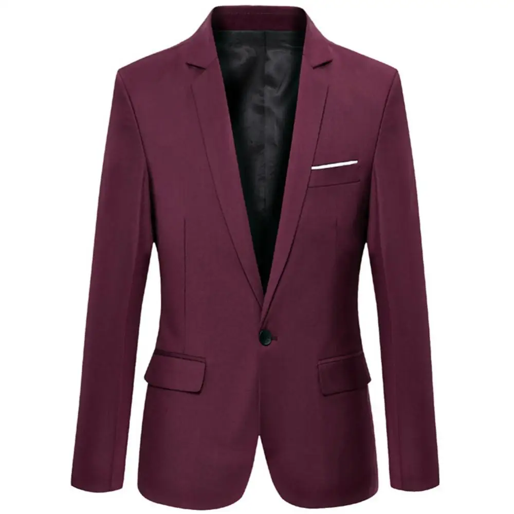 Мужские костюмы 2021, модный мужской однотонный блейзер с длинным рукавом и лацканами, костюм, пальто, верхняя одежда