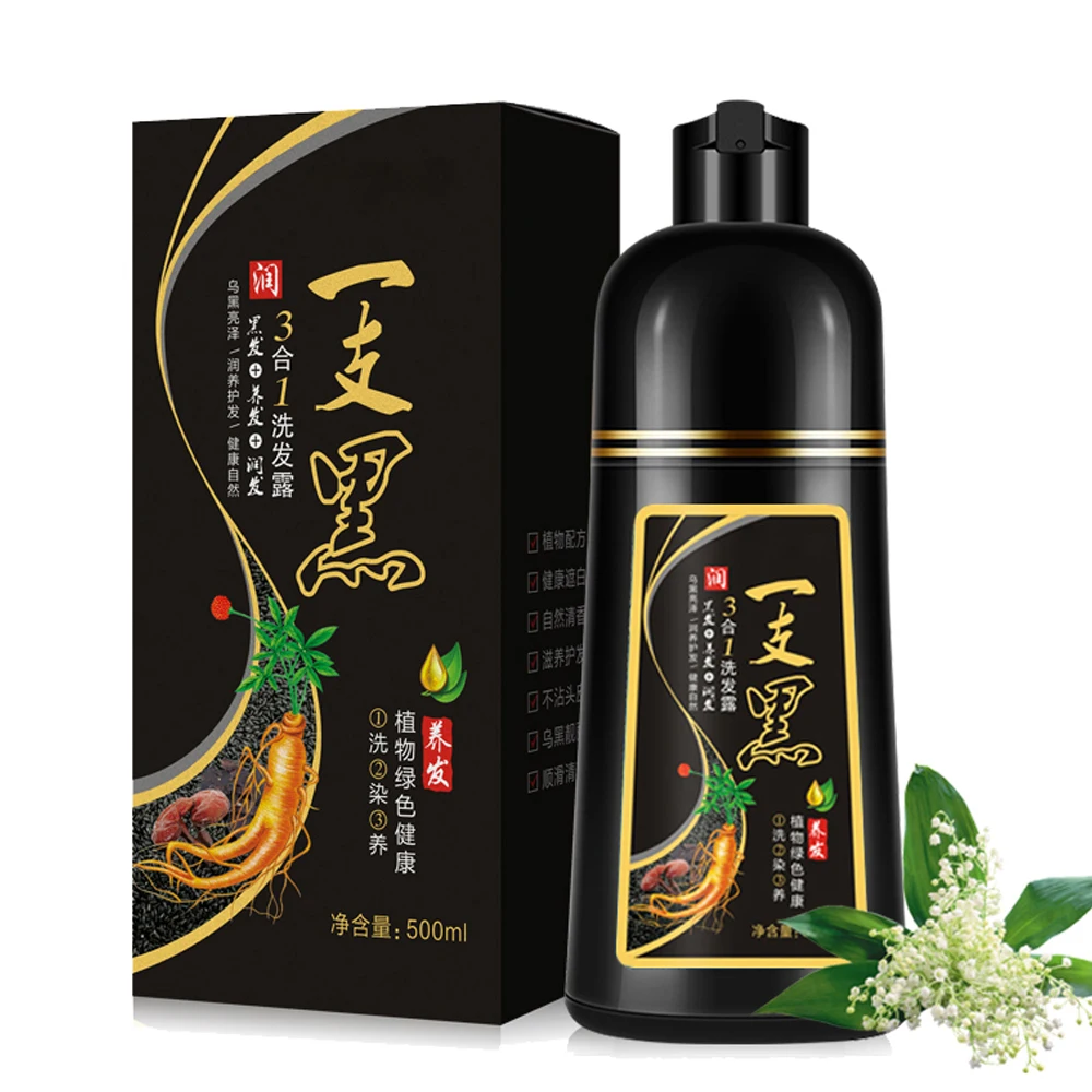 500 мл Перманентный черный шампунь для волос, натуральный Быстрый краситель для волос, растительная эссенция, черная краска для волос, шампунь для женщин, MenCover, серые, белые волосы