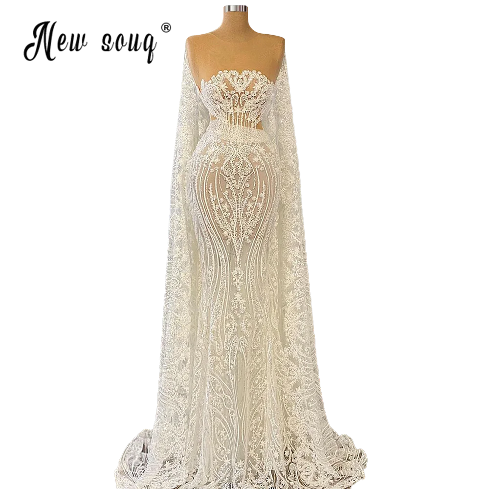 Роскошное свадебное платье-Русалка с бусинами 2021 элегантное женское платье с круглым вырезом и рукавами-накидками для официальвечерние Свадебные платья для невесты
