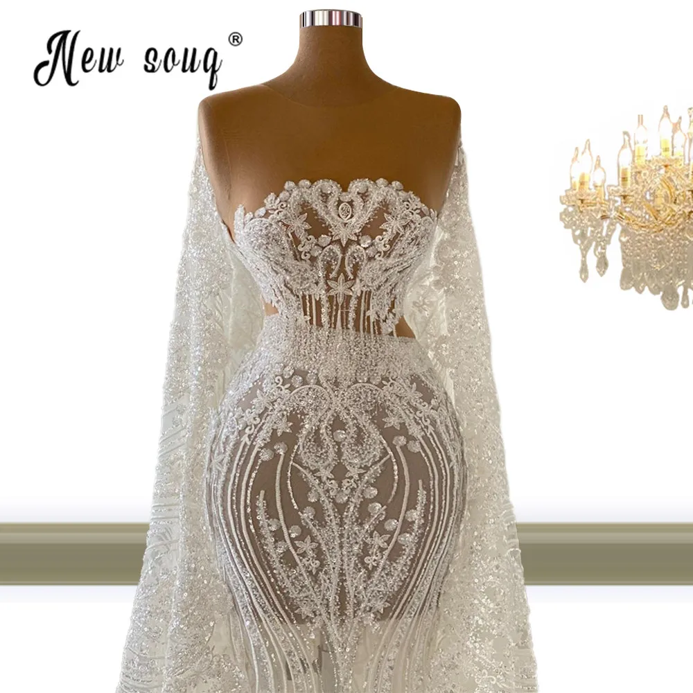 Роскошное Расшитое бисером Русалка свадебное платье 2021 с О-образным вырезом с рукавами типа пелерины, элегантные женские Формальные Вечерние платья Свадебные платья для невест