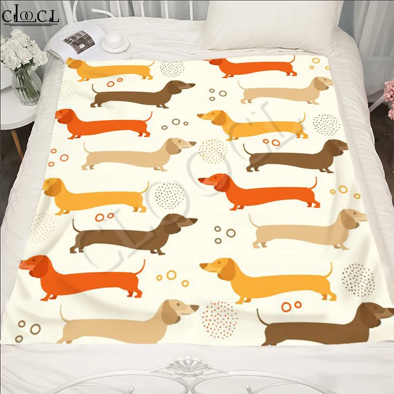 Милое фланелевое одеяло с рисунком таксы, переносное ультрамягкое п...