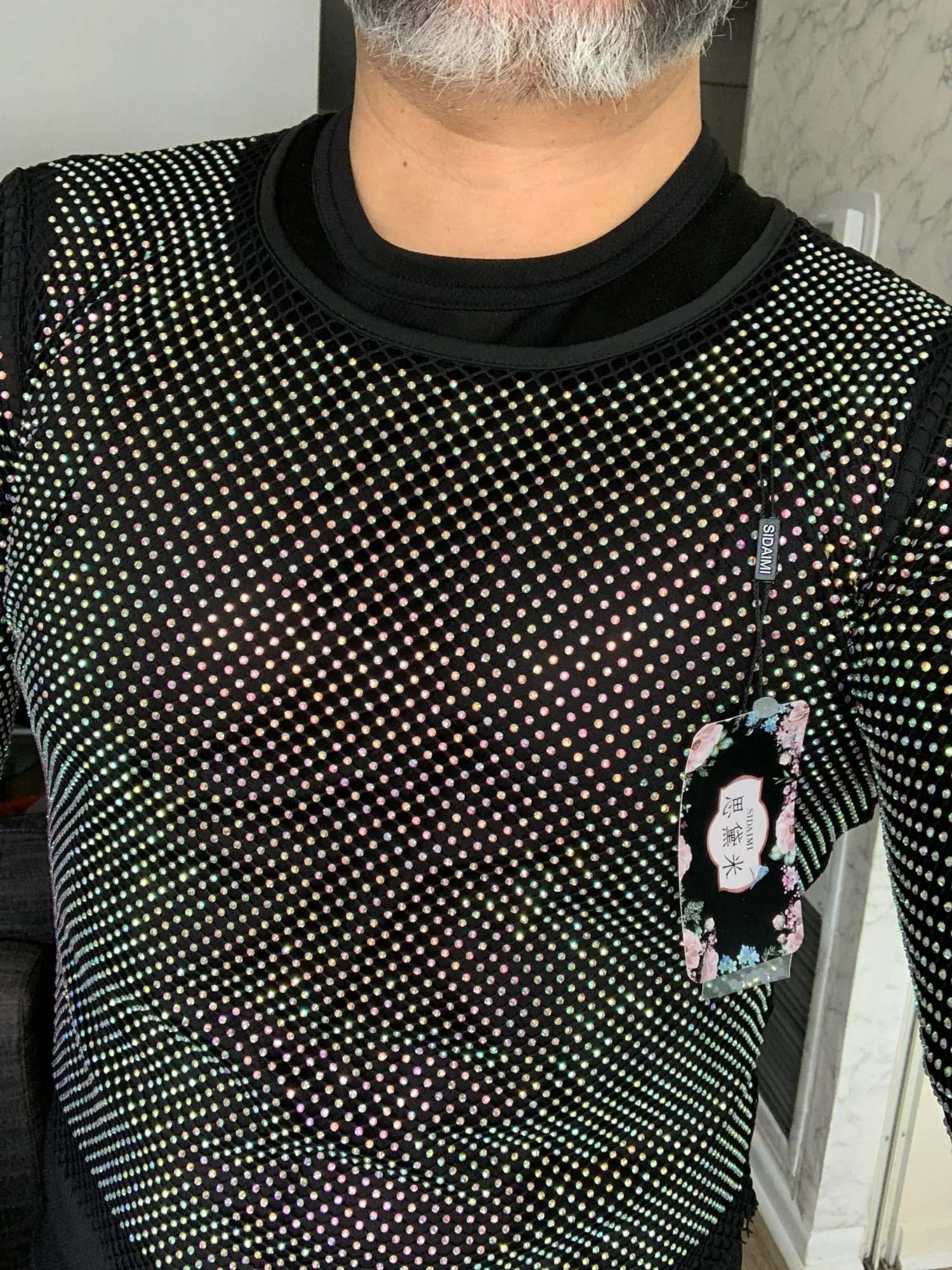 Он прибыл гораздо раньше, чем ожидалось, качество отличное, он поставляется с запасными камнями, одежда однородная, но она подходит от S до L до совершенства, кристаллы сияют невероятно, плюс ткань растягивается