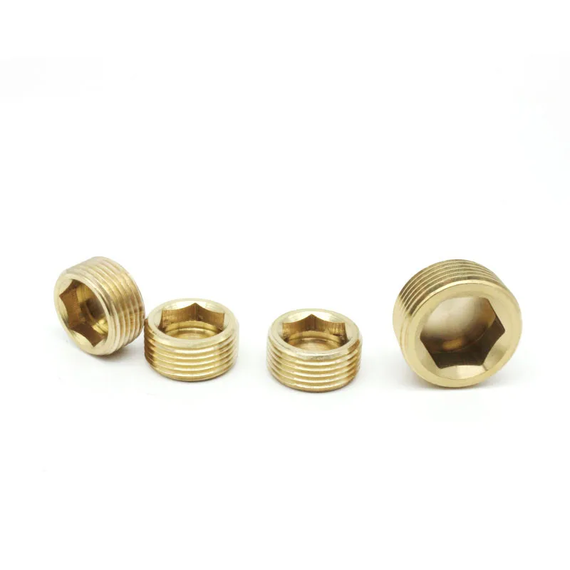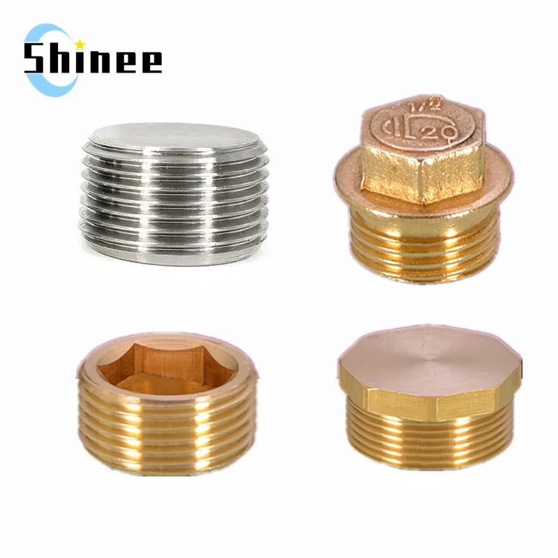 Медная резьба 18 дюйма, 14 дюйма, 38 дюйма, 12 дюйма, 34 дюйма, наружная резьба, латунь, труба, Шестигранная головка, Концевая заглушка, фитинг, Соединительный адаптер