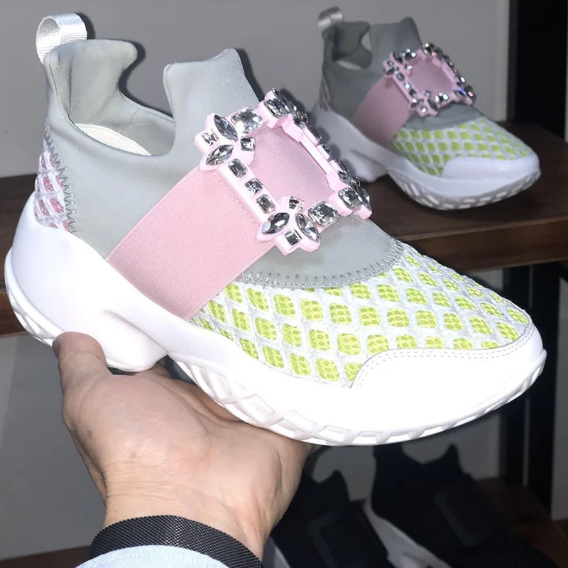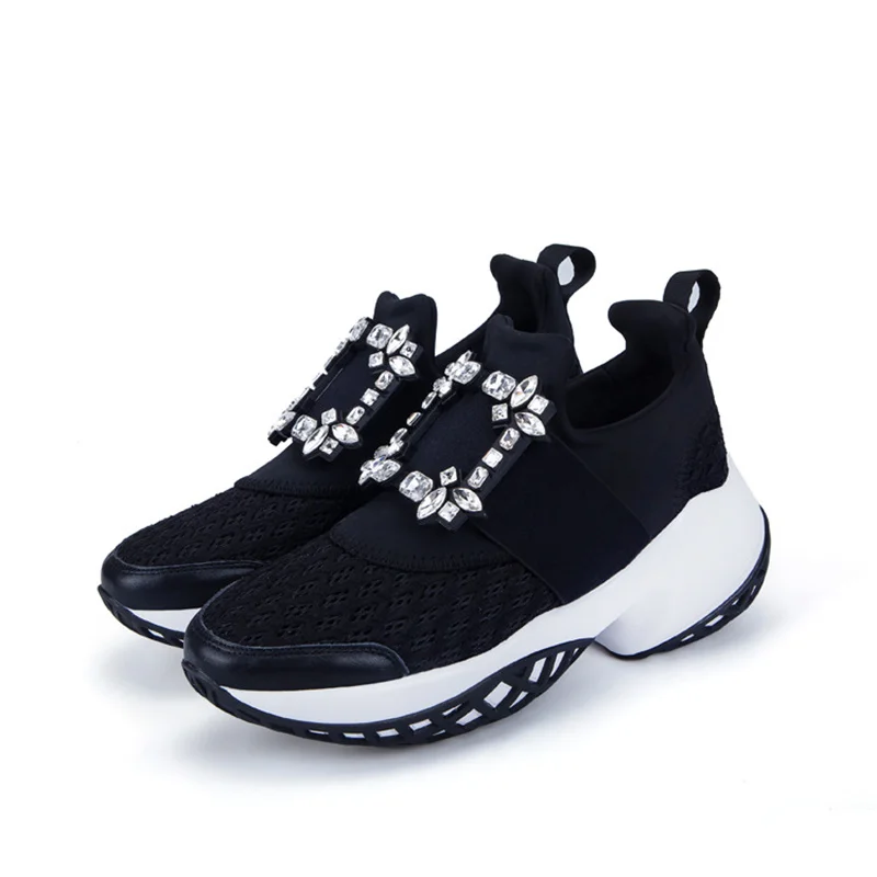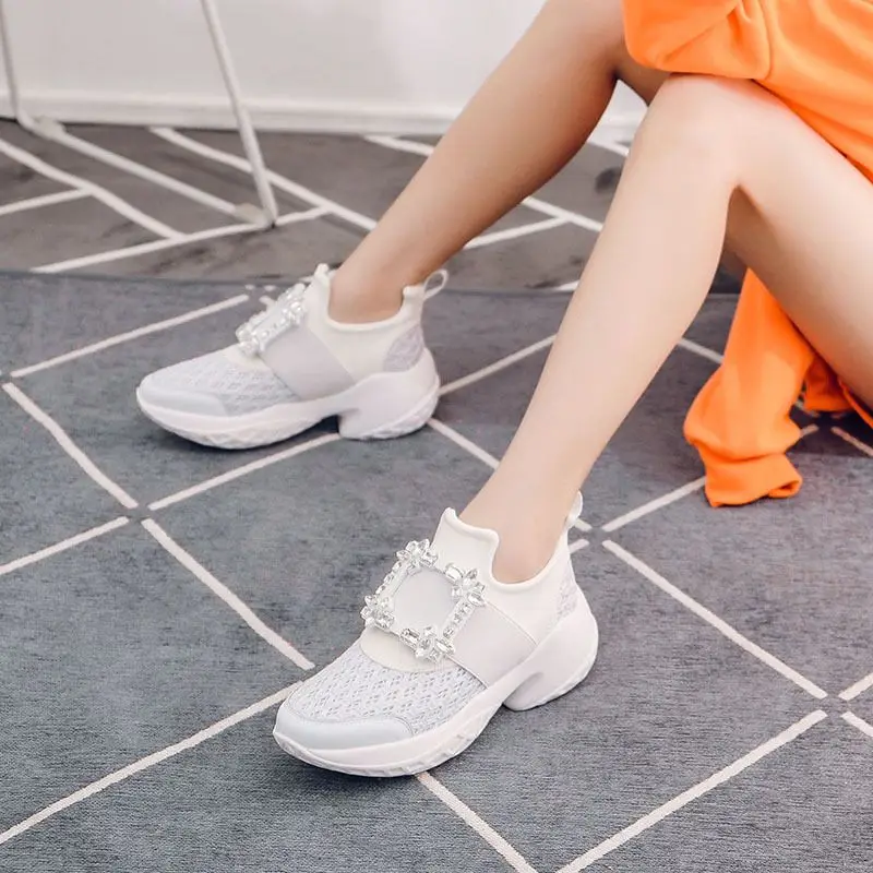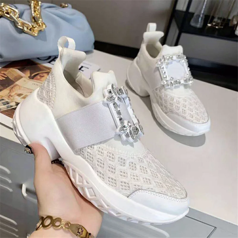 Женские сетчатые кроссовки, повседневная обувь на платформе, с кристаллами, на толстой подошве, для вечеринок, роскошные спортивные туфли-гладиаторы