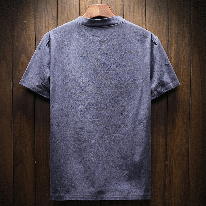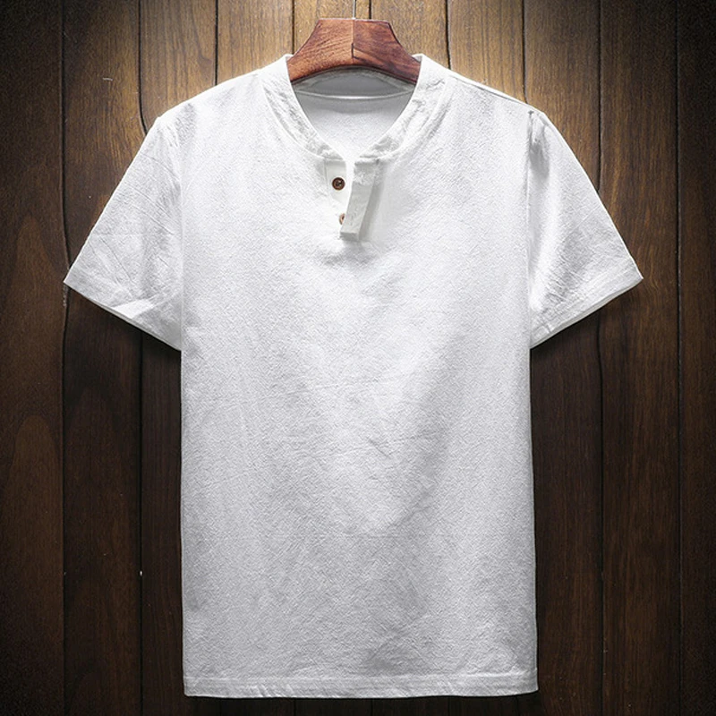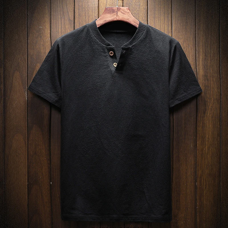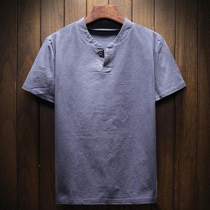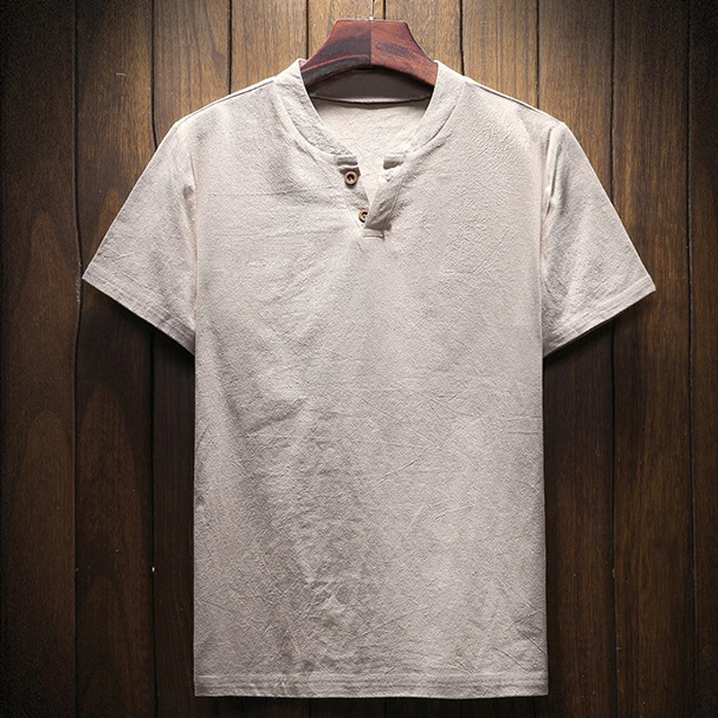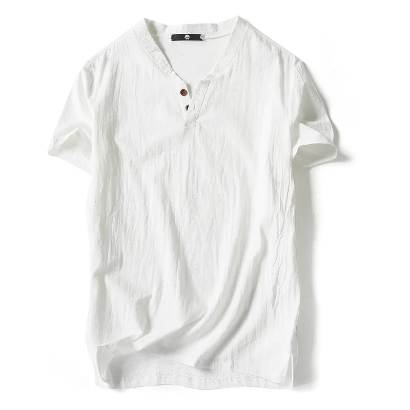 Мужская летняя рубашка с V-образным вырезом, свободного покроя