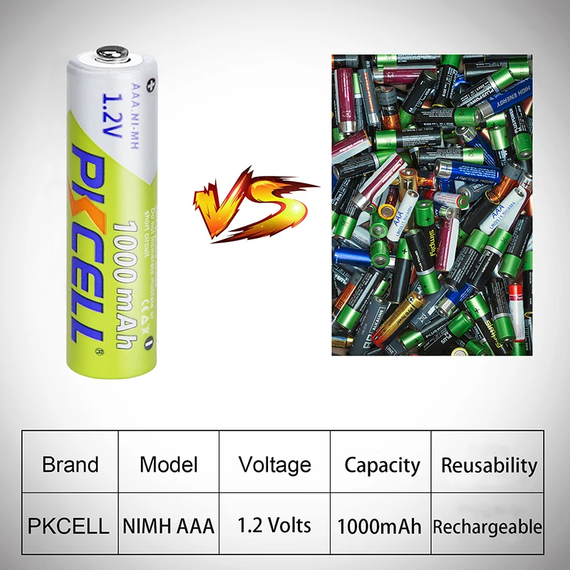 Аккумуляторные батарейки PKCELL 4 шт., 1000 мАч, 1,2 в, 4 шт., акку...
