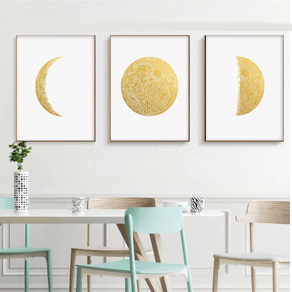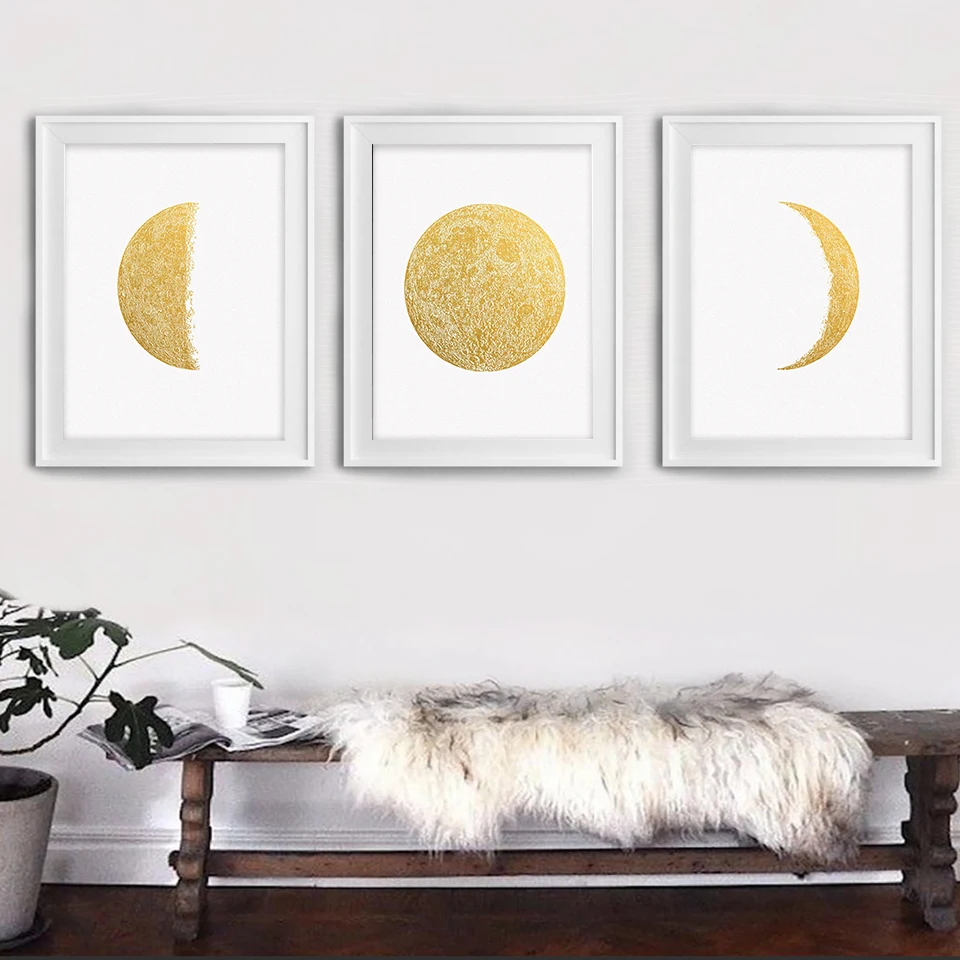 Минималистичный плакат в виде полнолунной Луны, искусство, серебряная фольга, луна, внешний вид, печать, фаза Луны, холст, живопись, нордический Декор для гостиной