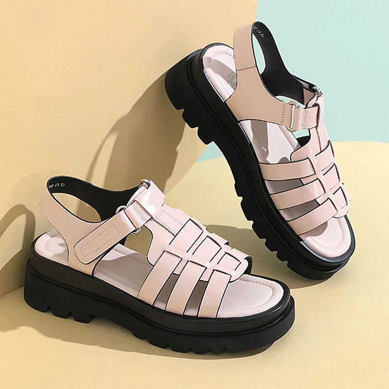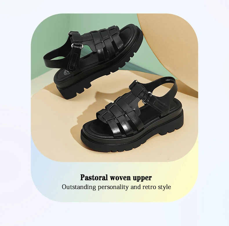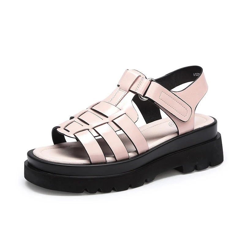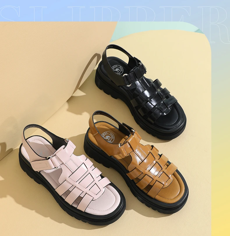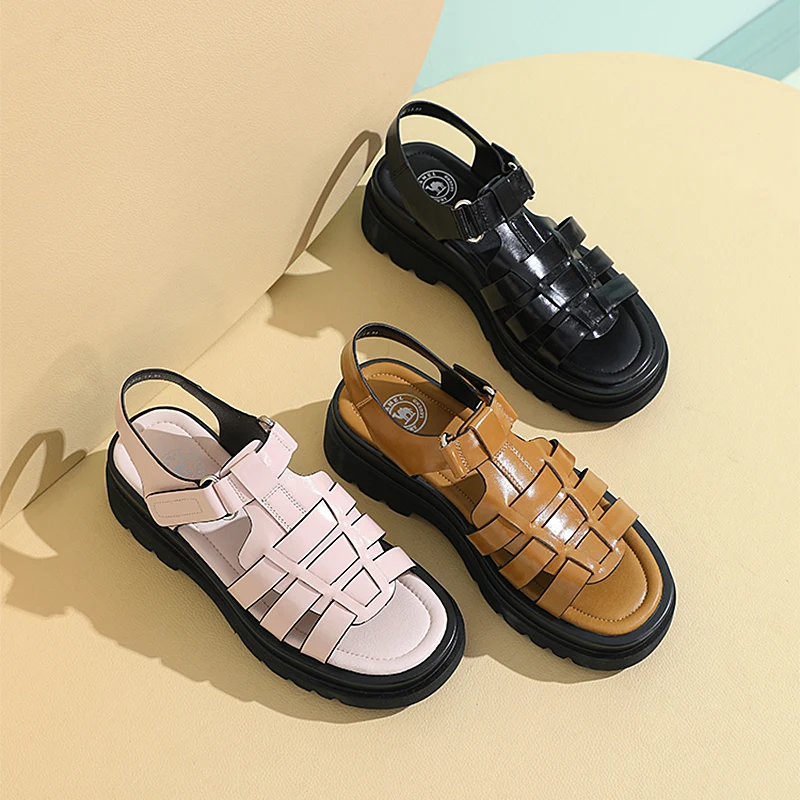 CAMEL2021 г., новые летние сандалии-гладиаторы модная повседневная женская кожаная обувь на платформе и Высоком толстом каблуке черные, розовые