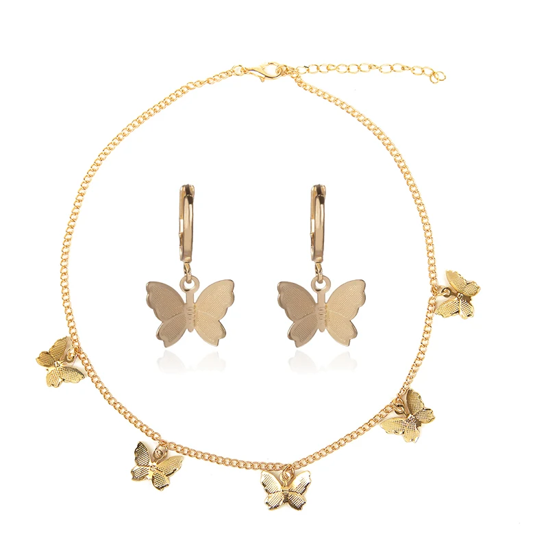 Кулон в форме бабочки серьги для женщин комплект ювелирных изделий романтический бабочка серьги в виде колец, ожерелье для женщин, браслеты с подвесками подарок на день рождения