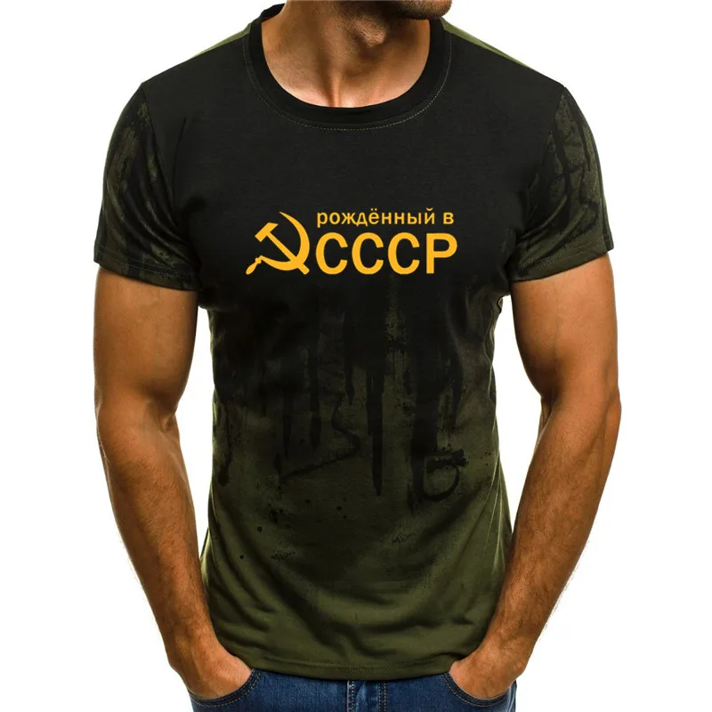Мужская камуфляжная летняя футболка с принтом СССР, русская футболк...