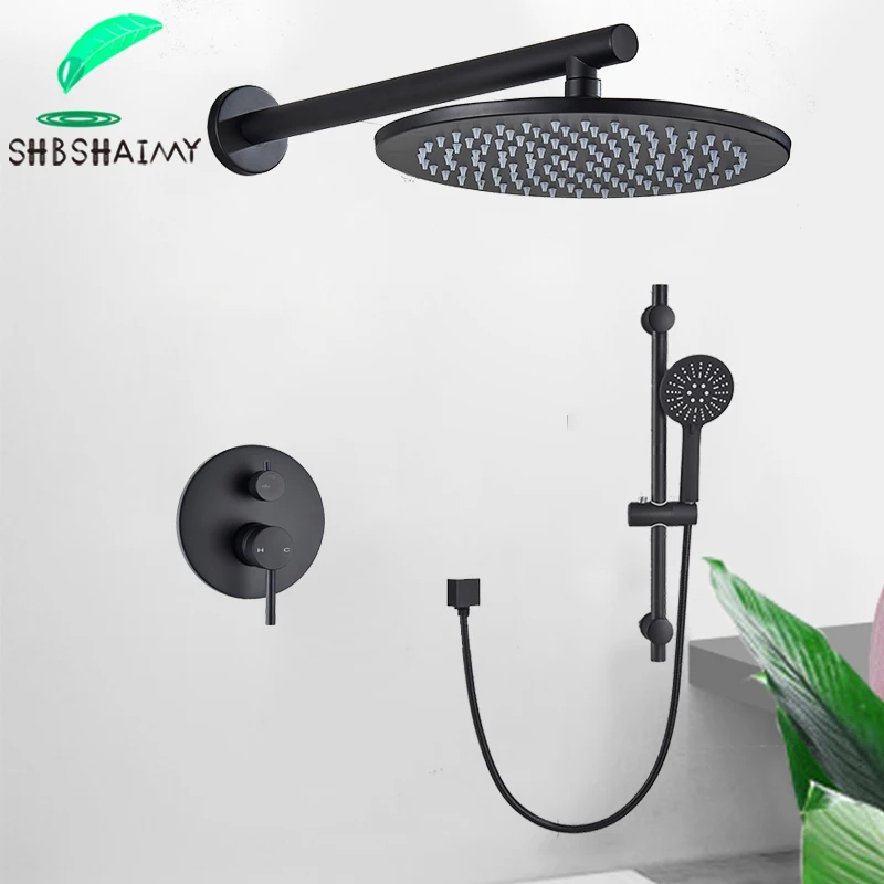 SHBSHAIMY черный 10 ''латунный душевой кран Набор Настенный Круглый душевой смеситель для горячей и холодной воды латунный ручной душ с трубкой 150 см