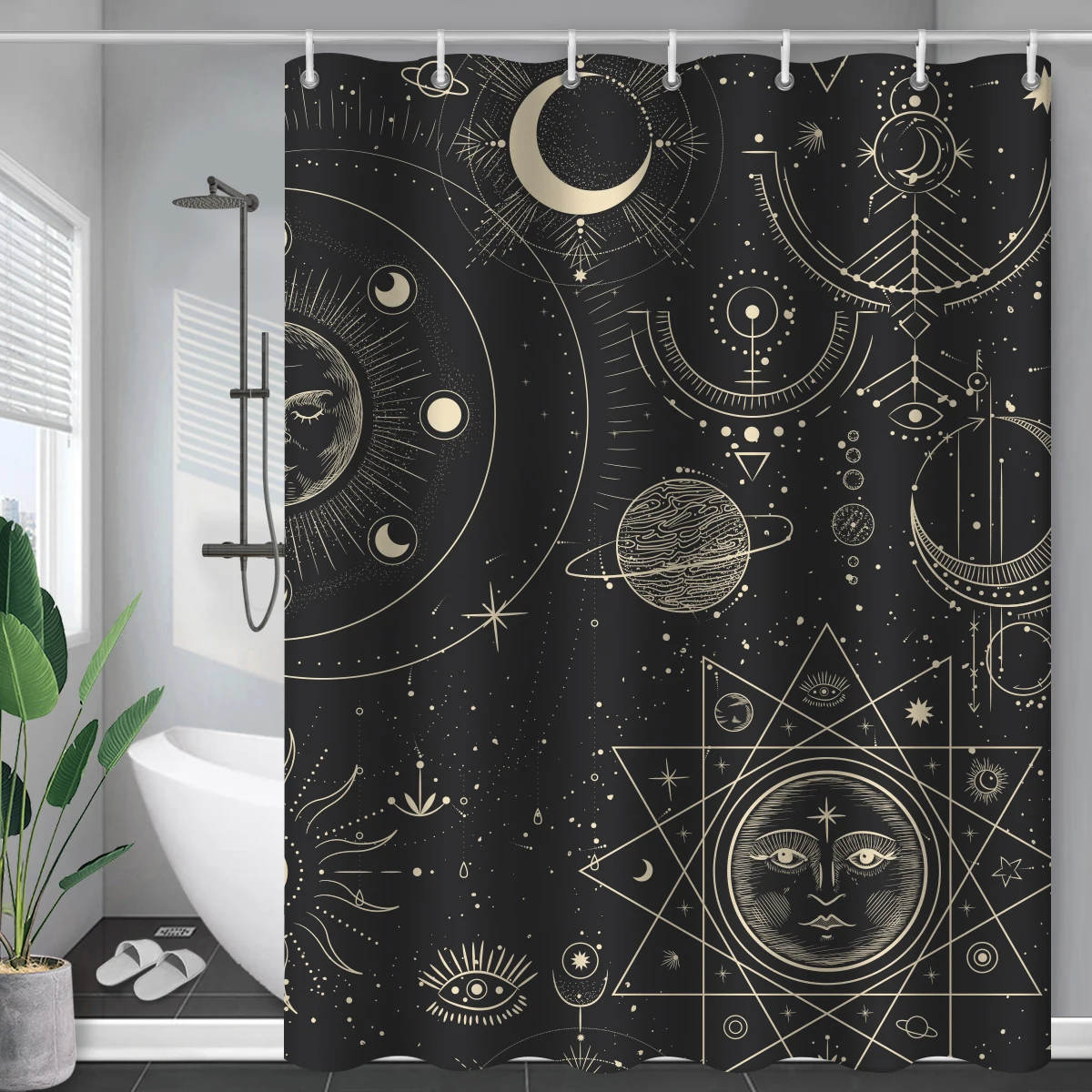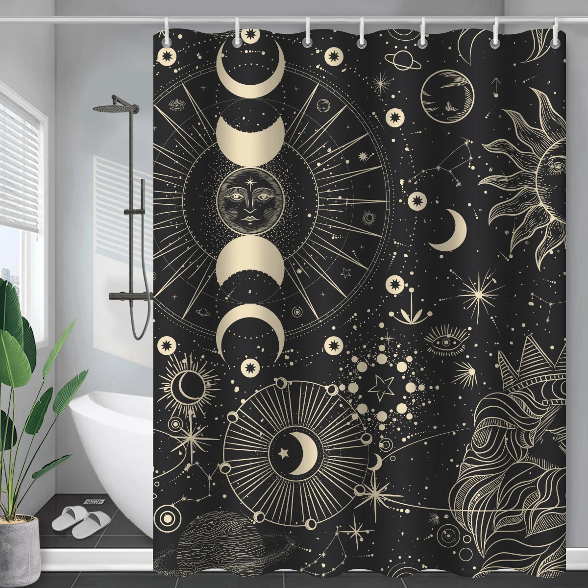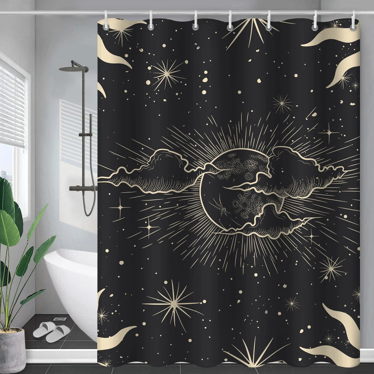 Черная занавеска для душа солнце и луна современное Созвездие абстрактная Мистика Duschvorhang водонепроницаемые шторы для ванной s с крючками
