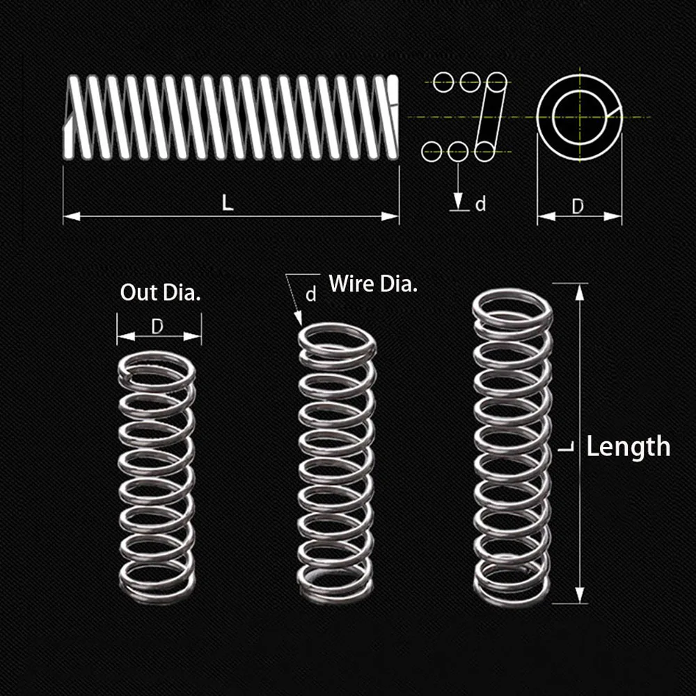 5 шт. 304 Нержавеющаясталь Пружина сжатия Давление пружины провода Диаметр 1,2 мм Длина 60mm-70mm-80mm-90mm-100mm диаметром 8 мм-20 мм