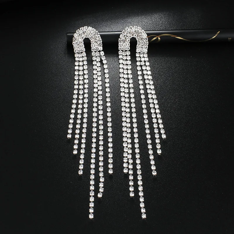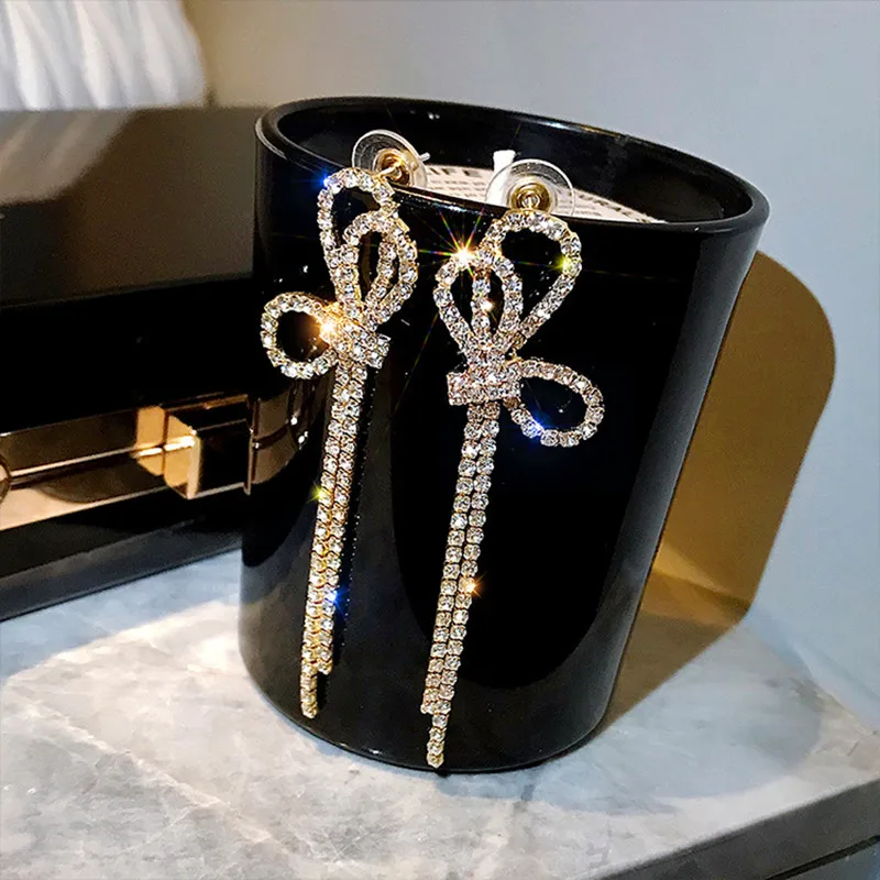 Модные с длинной бахромой блестящие с украшением в виде кристаллов, свисающие серьги для женщин, серьги с геометрическим рисунком, стразы в виде бабочек, украшения для вечеринок, украшения, подарки