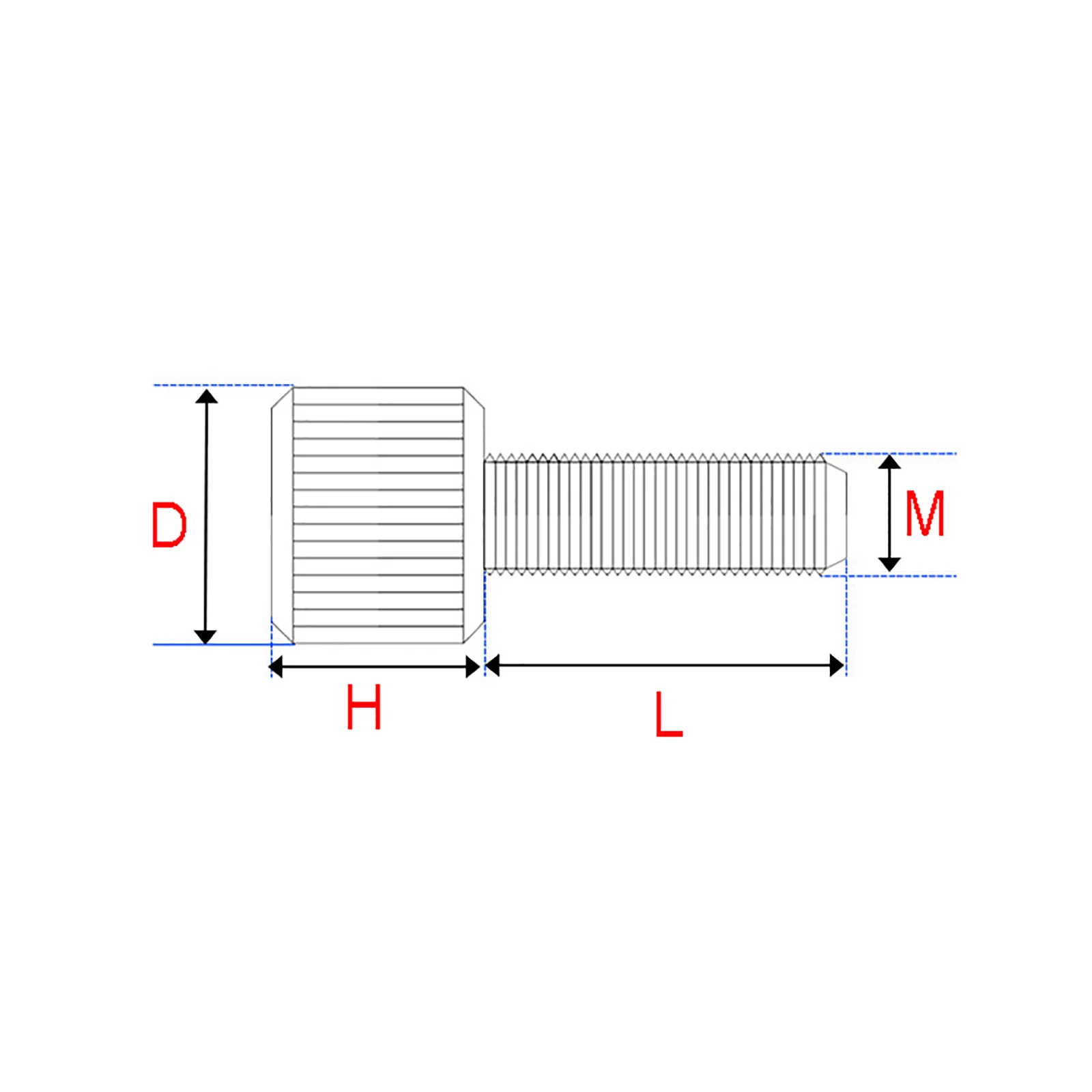 Описание размера: например, M3x8-D10x6 (диаметр резьбы M = 3 мм, Длина резьбы L = 8 мм, диаметр головки D = 10 мм, толщина головки H = 6 мм).