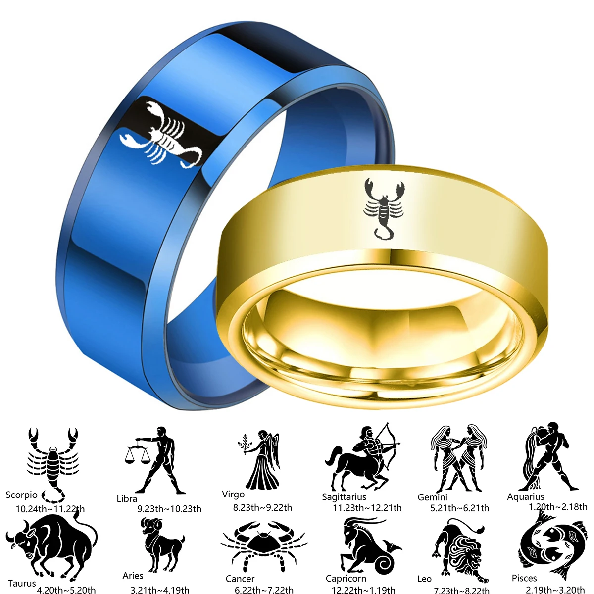 2021 двенадцать созвездий Для мужчин's и Для женщин Для Мужчин's Нержавеющаясталь кольца Овен, Телец Дева весы для малышей с принтом Скорпион Стрелец 12 гороскоп кольцо