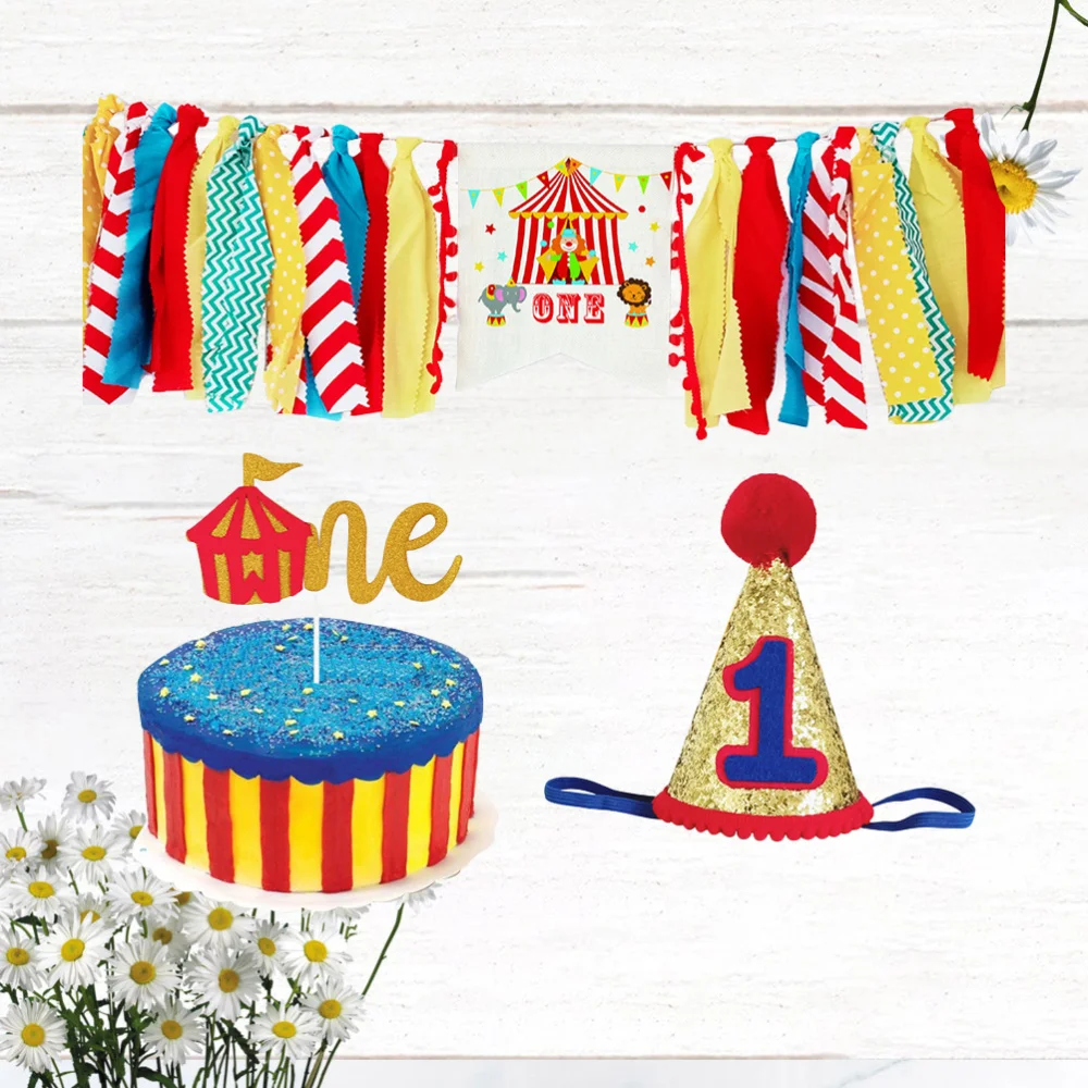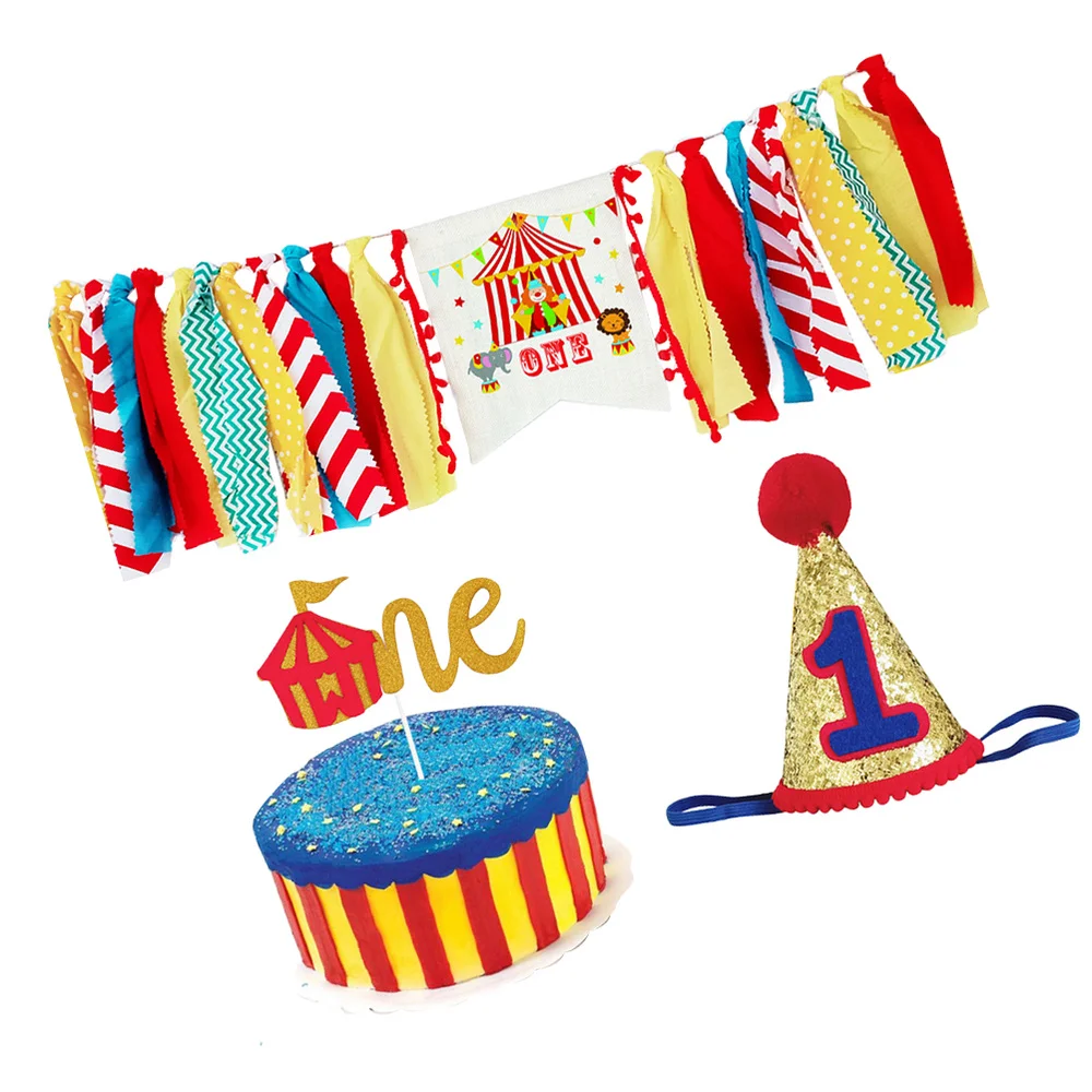 Флаг для обеденного стула 1 комплект из 3 шт., баннер для цирковой вечеринки на день рождения с мультяшным принтом, подвесные баннеры, флаги для высоких стульев