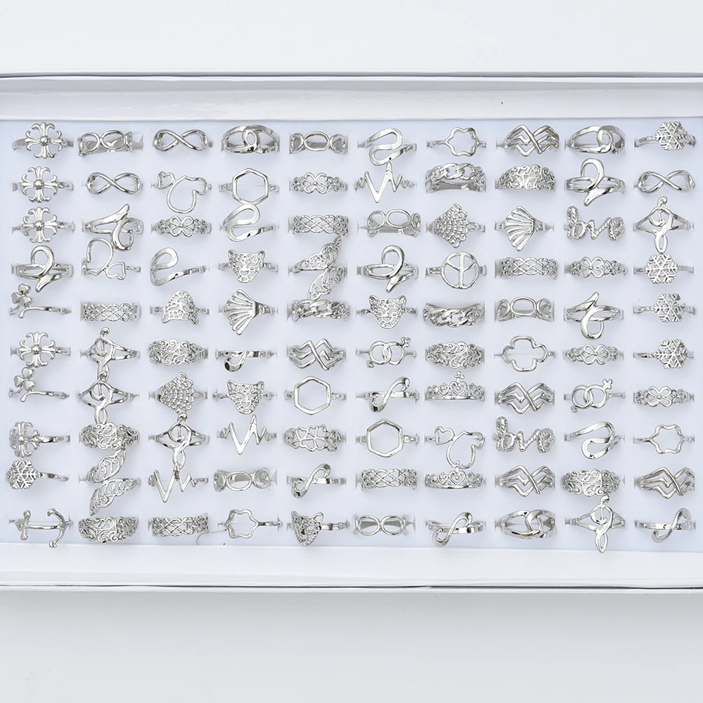10 шт.лот Модные полые медные золотистые серебристые кольца на палец в форме сердца с цветами с бантом Love для женщин Смешанные стильные свадебные украшения