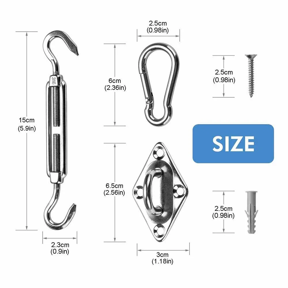 Простота установки: Измерьте и очистите область, где будет установлен теневой парус. Оставляйте запас 1,5-2ft между с фиксацией и солнцезащитным козырьком нейлон для установки оборудования/крючки или канатов. Изогнутые стороны могут увеличить прочность на растяжение и предотвратить провисание, поэтому фактическая площадь теней будет немного уменьшена, с допуском от 4 до 6 дюймов с каждой стороны. Вы можете установить различные тени паруса разных цветов и размеров, чтобы получить большую затененную область.