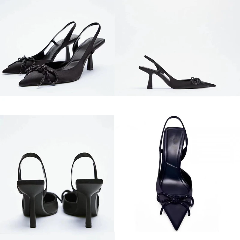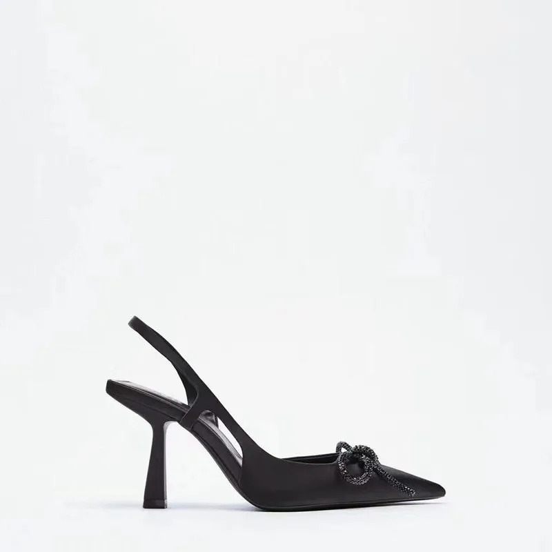 Женские туфли с острым носком ZA, черные туфли на высоком каблуке, ...