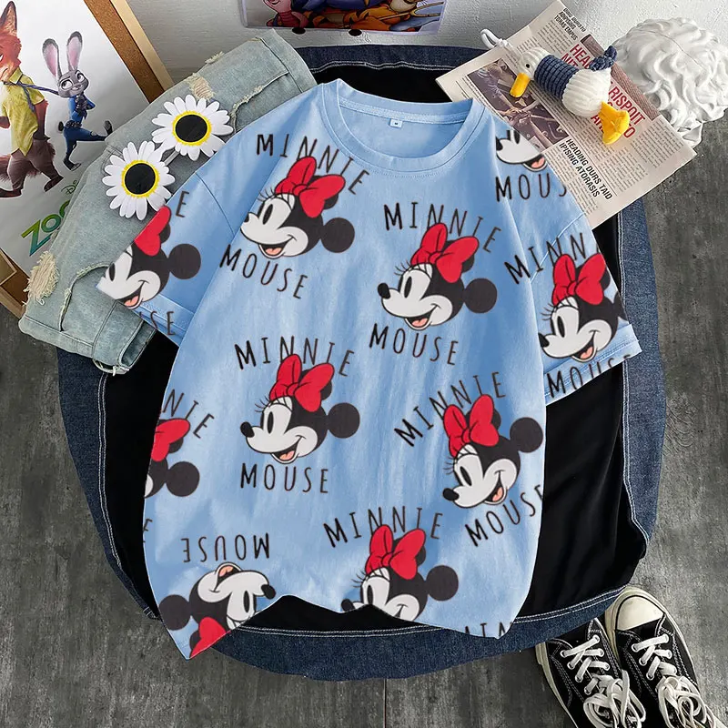 Женская футболка Disney с принтом Минни Маус, Повседневная Блузка с...