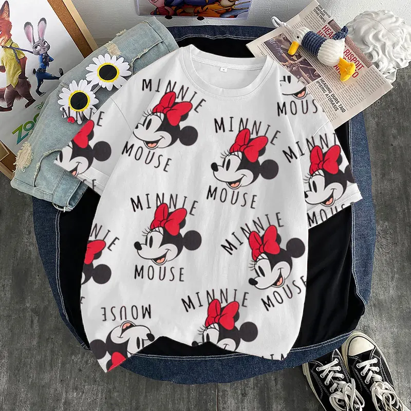 Футболка женская оверсайз с Микки Маусом Disney, удобная рубашка с круглым вырезом, белая мультяшная, в стиле Харадзюку, на лето