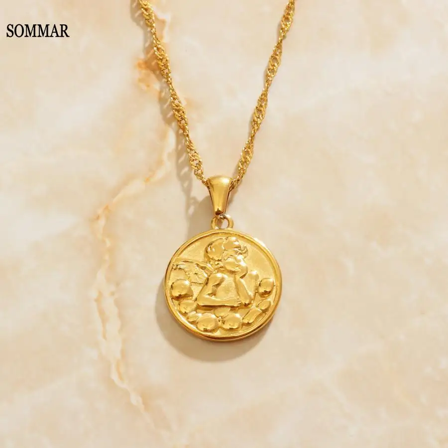 Женское ожерелье и кулон SOMMAR, золотистого цвета, с рельефным ангелом, с духами