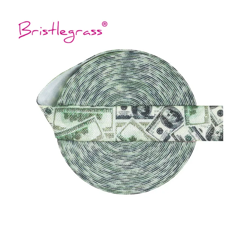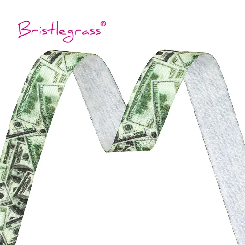 BRISTLEGRASS 2 5 ярдов 5/8 "15 мм американский доллар деньги печати FOE Сложите за резинки спандекс атласные ленты лента волос галстук платье швейная отделка