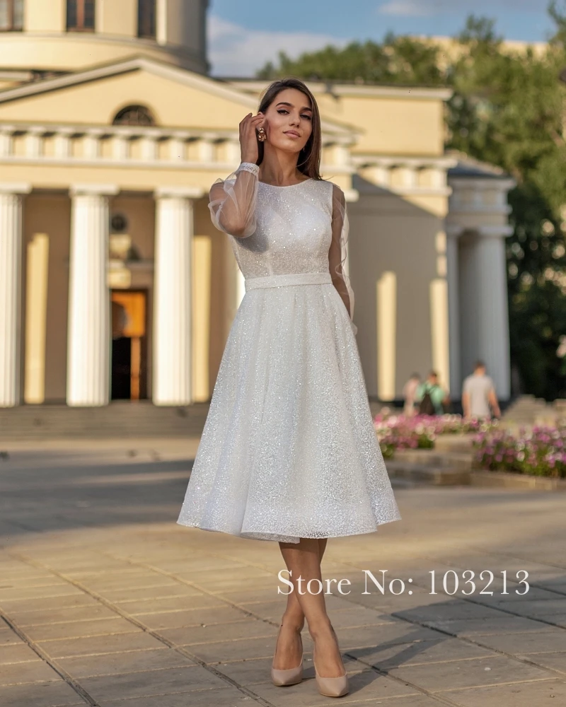 Блестящее летнее свадебное платье трапециевидной формы с длинными рукавами средней длины с блестками свадебное платье 2022 на заказ