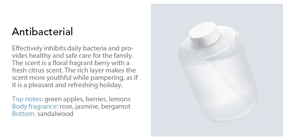 Отсутствие контакта, более санитарное, эффективное антибактериальное, газовое и жидкое соотношение пузырей к 12:1Тонкая и плотная пена может лучше покрыть кожу эпидермиса, непосредственно к тонкой поре, добиться глубокого очищенияЭффективное торможение ежедневных бактерий, скорость торможения до 99,9 процентов, Микрон-класс пены, проникает в поры, глубокое очищениеКомпактный корпус, натуральная растительная эссенция, влажный и удобный, дезинфицирующее средство для рук, близкое к значению pH кожи, нежный и приятный для кожи, не тугой, пена без остаткаМожет эффективно подавлять e. coli, staphylococcus aureus, candida albicans и другие бактерии общей жизни, эффективно заботиться о здоровье семьиМикро-Высокоэффективный двигатель и его резиновая амортизирующая структура не только имеют высокую эффективность пузырьков, но и не будут нарушены шумом при использовании, Интеллектуальная Индукционная конструкция, низкое энергопотребление320 мл дизайн большой емкости, доступный для 400 раз, компактный, минималистичный, заниженный дизайн стиль автоматически воспринимает пузырьки без нажатияРасстояние срабатывания: 60 - 90 мм, класс водонепроницаемости: IPX4, Номинальное напряжение: 6 В