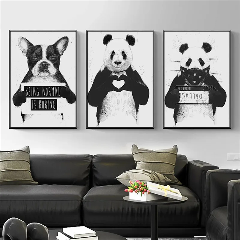 Плакаты и принты с изображением черно-белых животных, холст с изобр...