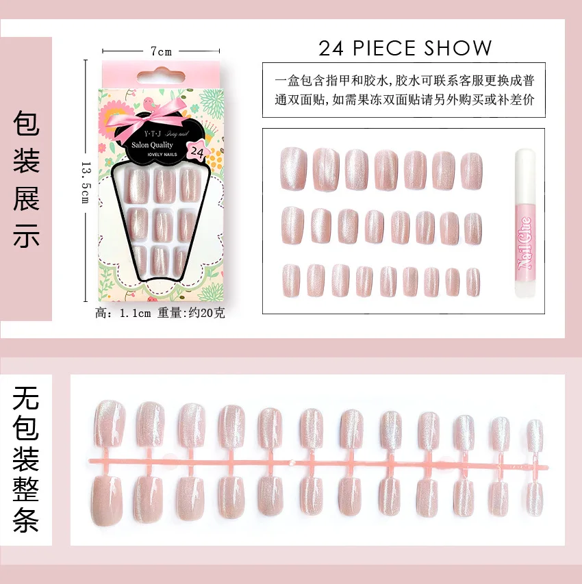 24 шт., накладные ногти с клеем, стикер, кошачий глаз, фототерапия,...