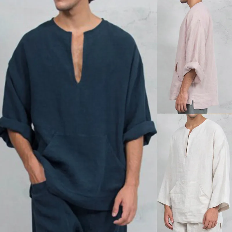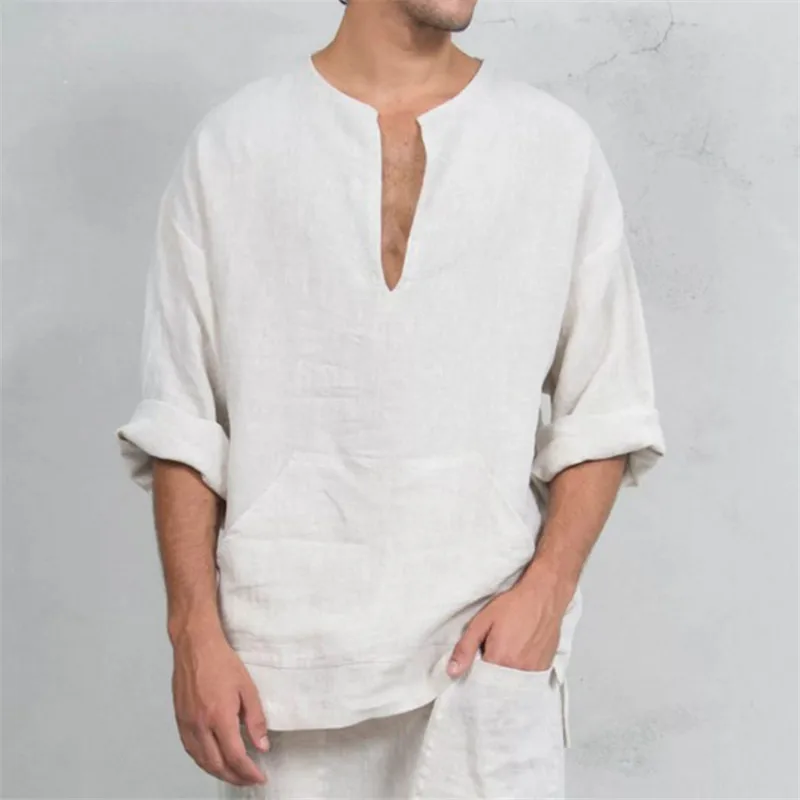 Костюм для косплея средневековый мужской, свободная рубашка с V-образным вырезом, модный Национальный однотонный льняной наряд, Повседневная Уличная одежда на Хэллоуин
