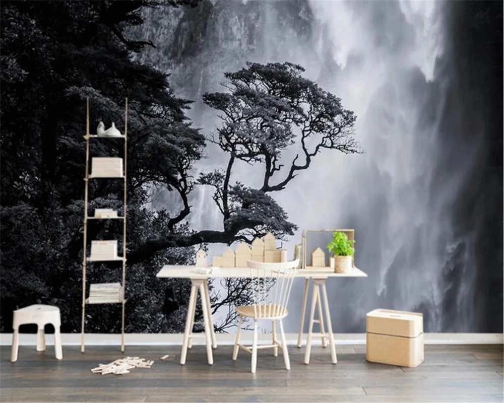 Самоклеящиеся обои, размер на заказ, 3D, скандинавские рисунки, черно-белый пейзаж, водопад, крыльцо, Декор для дома, гостиной, спальни
