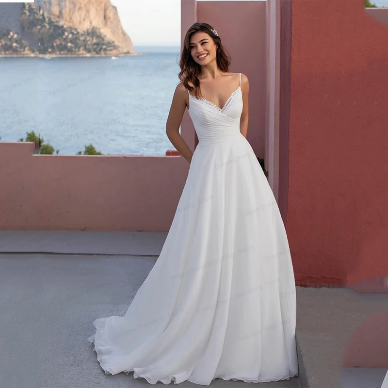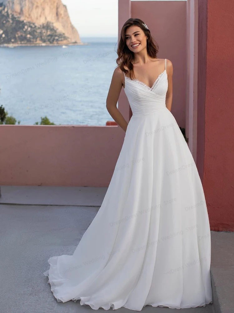Пляжные Простые Свадебные платья 2021 на бретельках с коротким шлейфом без рукавов с открытой спиной Свадебные платья из шифона для всей страны