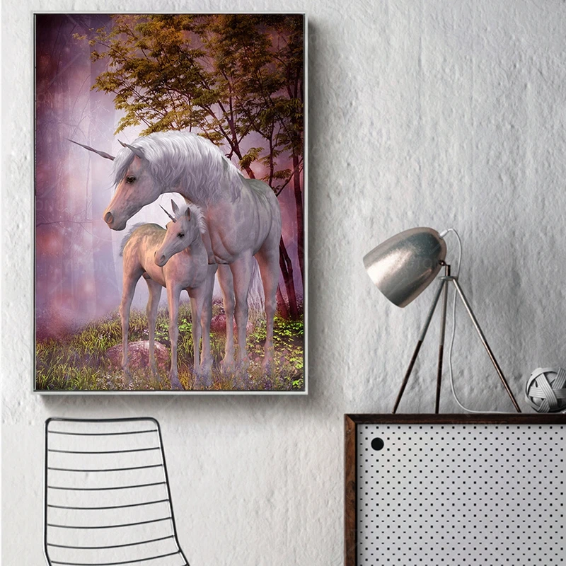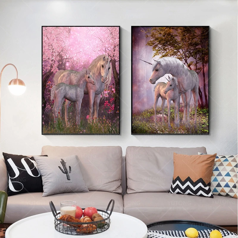 Настенная картина с изображением розового цветка дерева чудес единорога