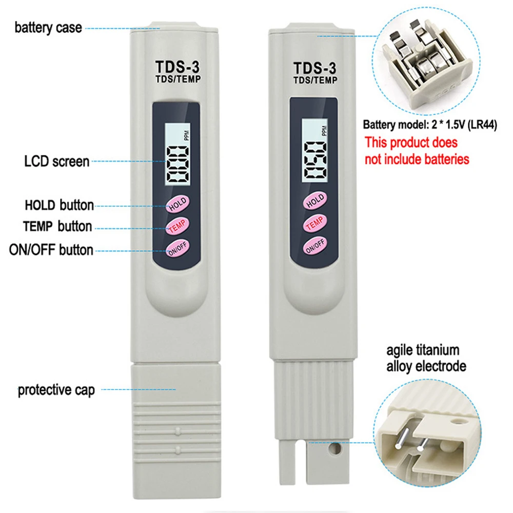 Цифровой тестер воды TDS, ручная ручка-тестер для определения качества воды, измеритель чистоты воды 0-9999 Ppm, измерительные инструменты