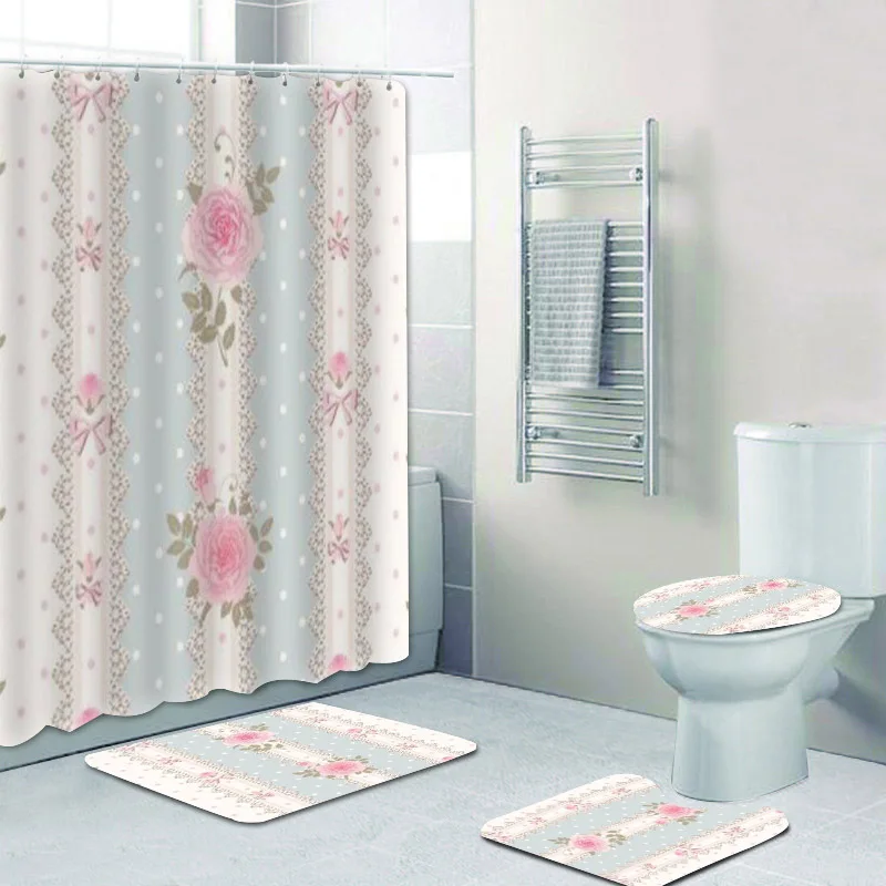 Занавеска для душа из полиэстера с маленькими Розовыми цветами розы, нескользящий коврик для ванной, крышка для унитаза, коврики, домашний набор для украшения ванной комнаты
