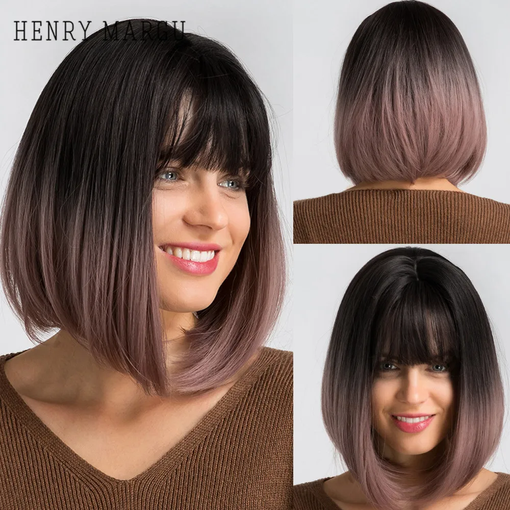 Женские короткие прямые синтетические парики, с эффектом омбре