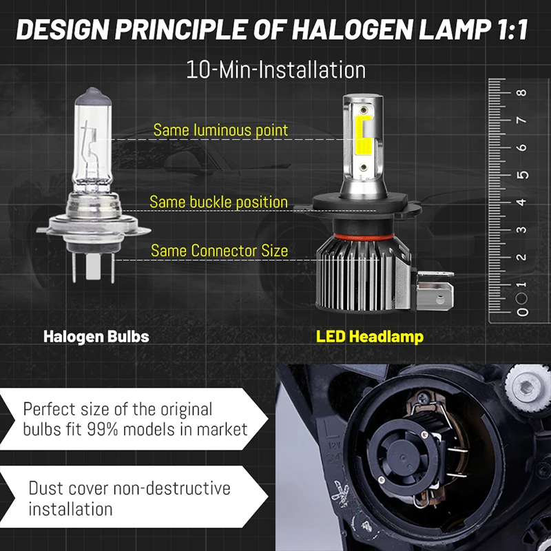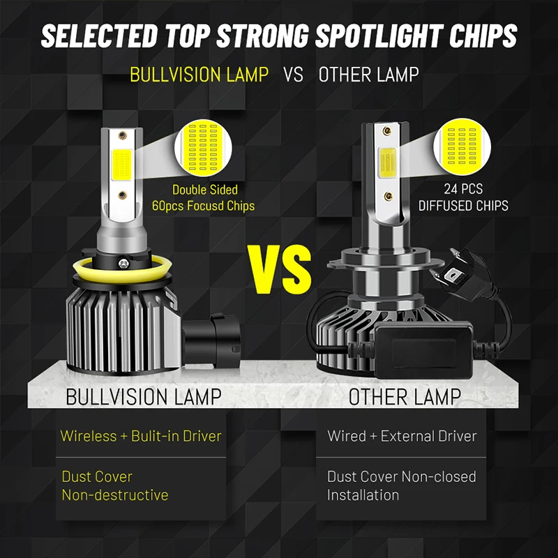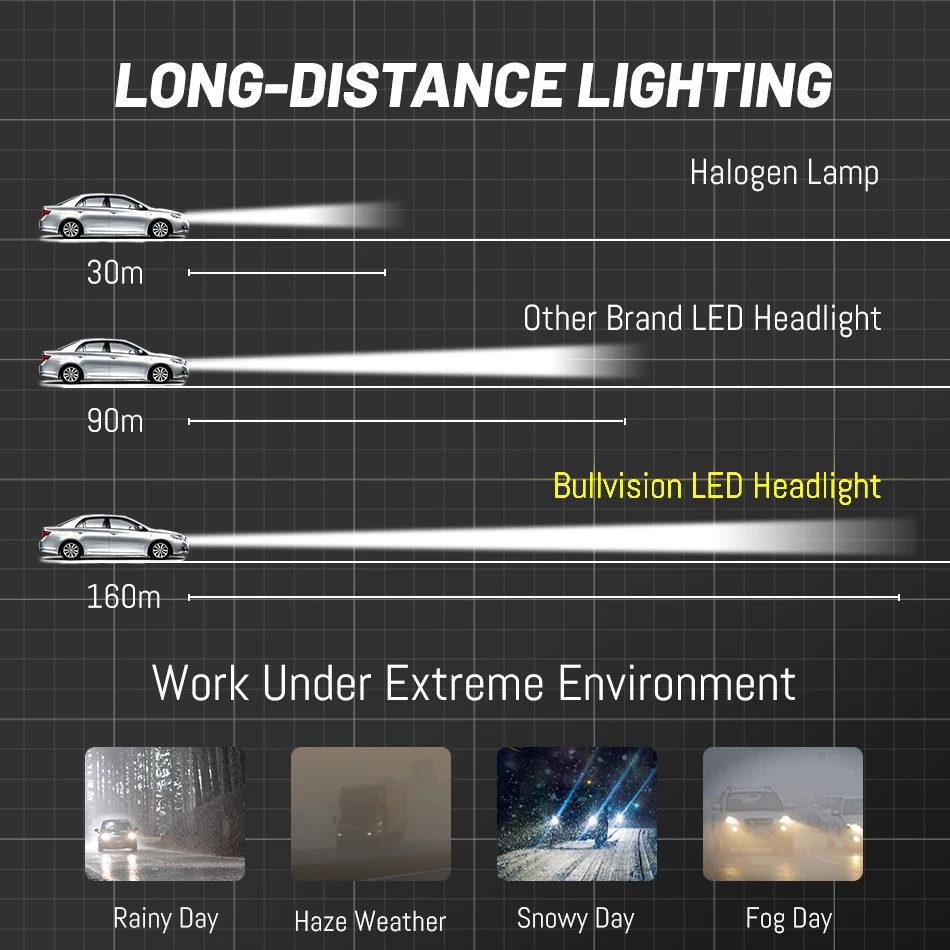 Светодиодные фары BULLVISION H7 9005 лм H11 H4 HB3 HB4 9006 6000 H8 H9 8000K Автомобильные противотуманные фары мини-размера дальний и ближний свет 2 шт.
