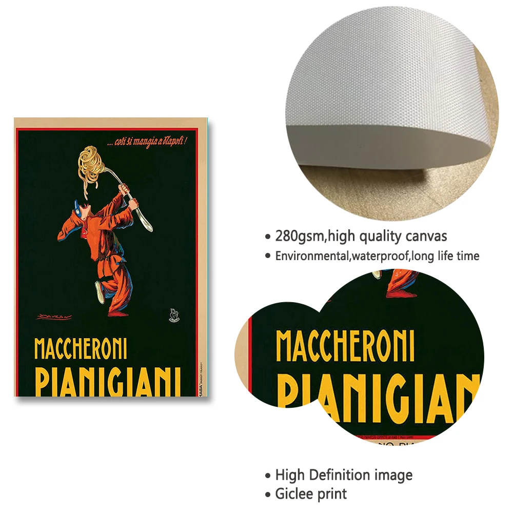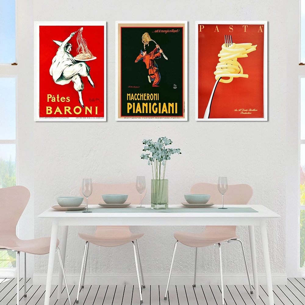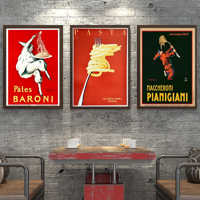 Винтажная итальянская паста, холст с рисунком в стиле ретро, еда и напитки, печать в итальянском кафе, ресторане, фотообои, Кухонное украшение