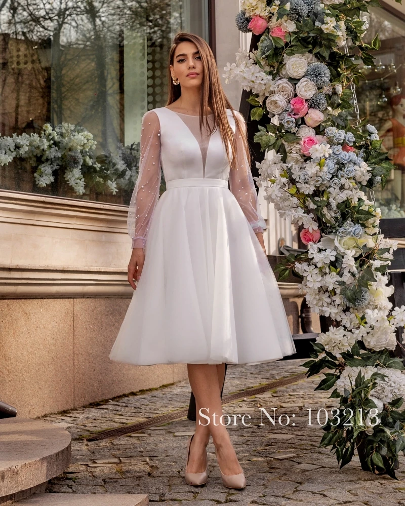 Винтажное Короткое свадебное платье трапециевидного силуэта, тюлевые платья невесты длиной до середины икры, садовое платье, индивидуальный пошив, 2021