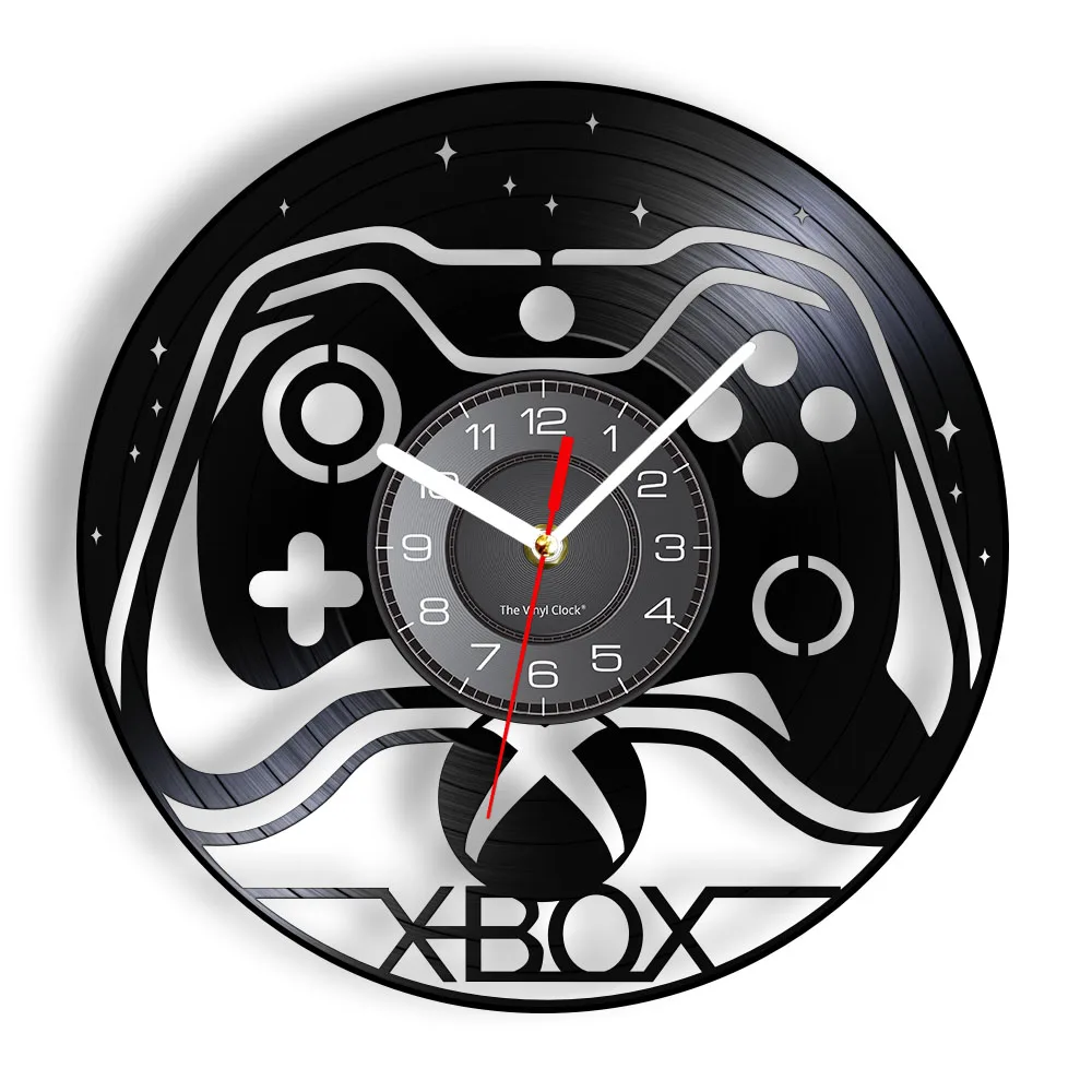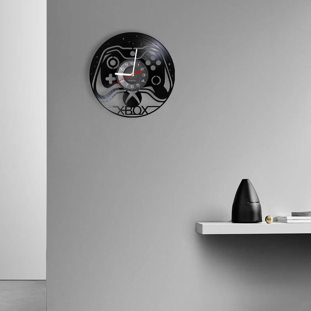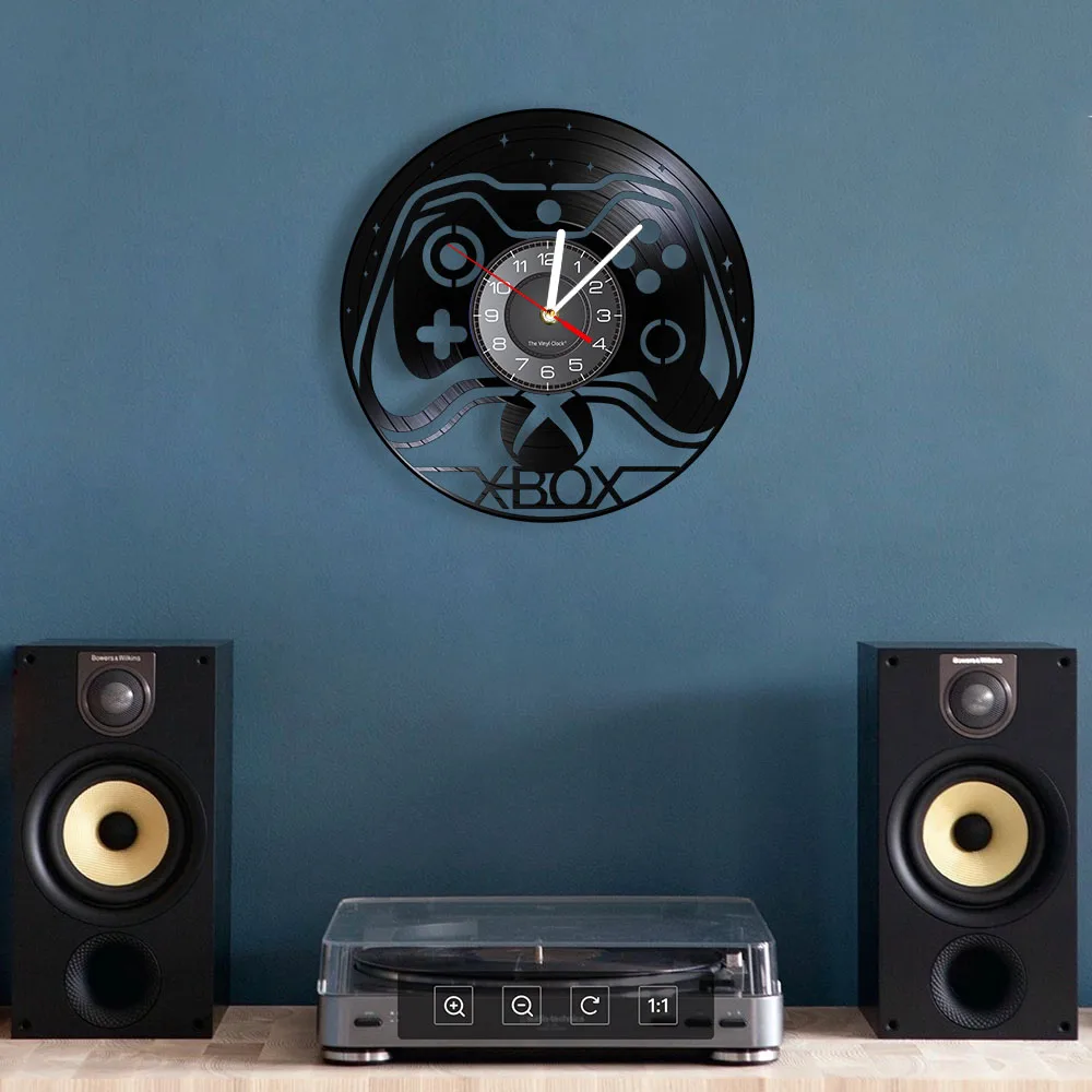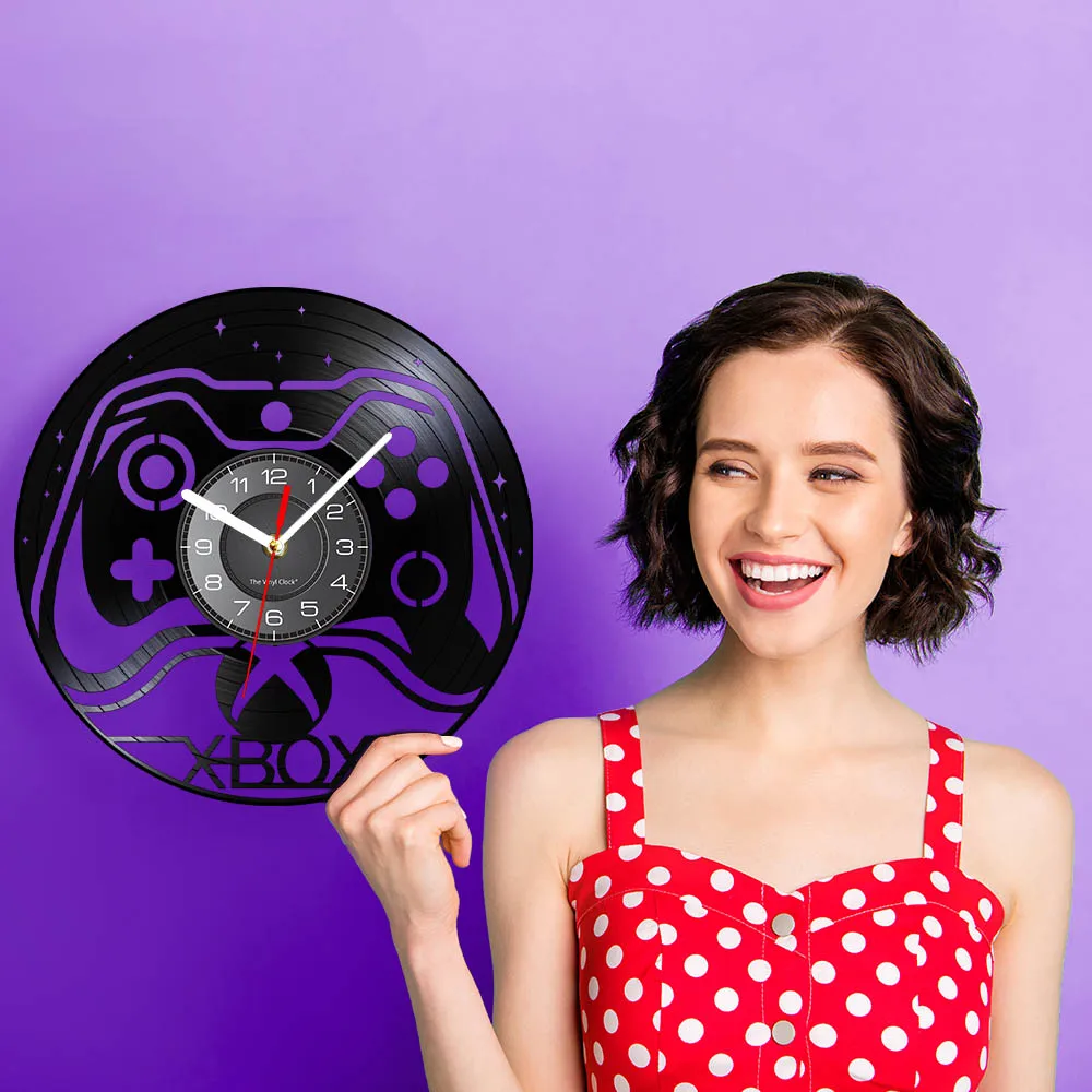 Игровой контроллер, виниловый альбом, часы с записью, винтажный игровой декор для мальчика, спальни, джойстик, виниловый диск, настенные часы